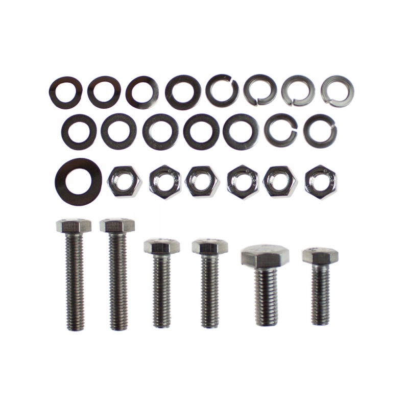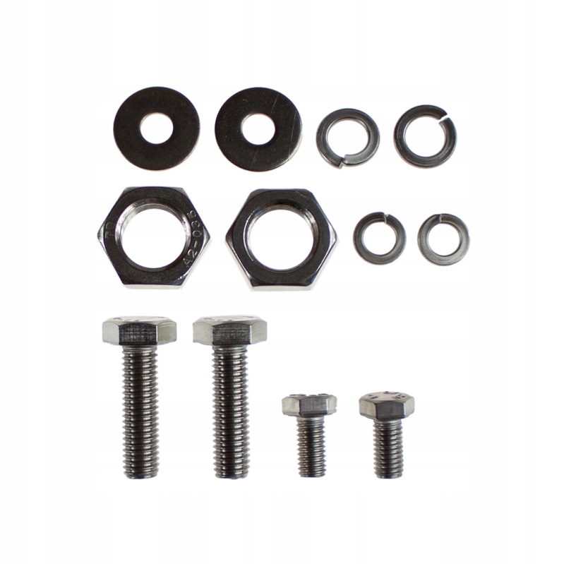 - в комплект входят винты с полной резьбой и без полной резьбой, шайбы, шайбы пружинные, гайки, болты конические