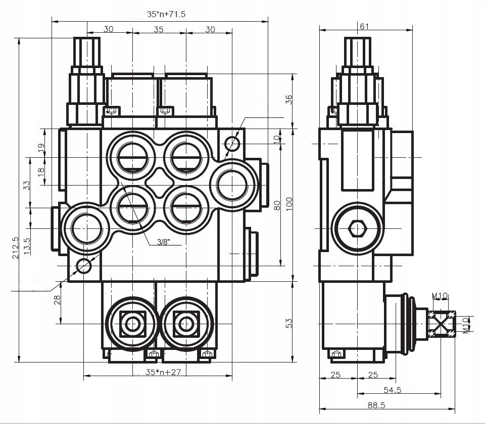 питание от насоса (p1, p2) : внутренняя резьба BSP 1/2"