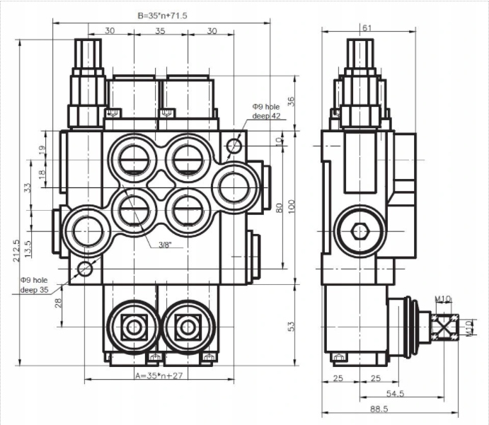 выход на секции (A1, A2, B1, B2): внутренняя резьба BSP 3/8"
