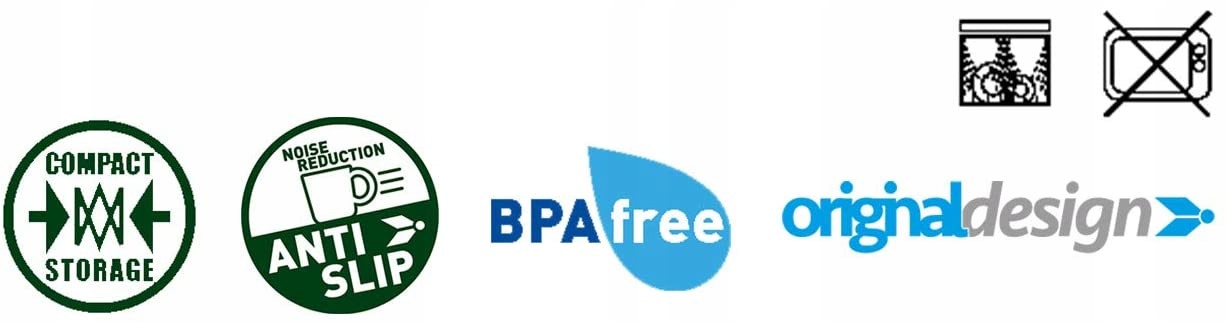 все компоненты комплекта оснащены системой противоскольжения ANTI SLIP. каждый сосуд с нижней стороны проклеен резиной. Это делает посуду стабильной, а использование во время путешествия полностью безопасно и комфортно.