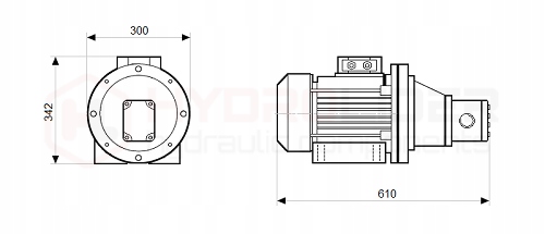 Полный привод для дровокола, состоящий из 3-х фазного электродвигателя и 1-х секционного гидронасоса, сцепления , разъем колокола и винты для подключения к двигателю.