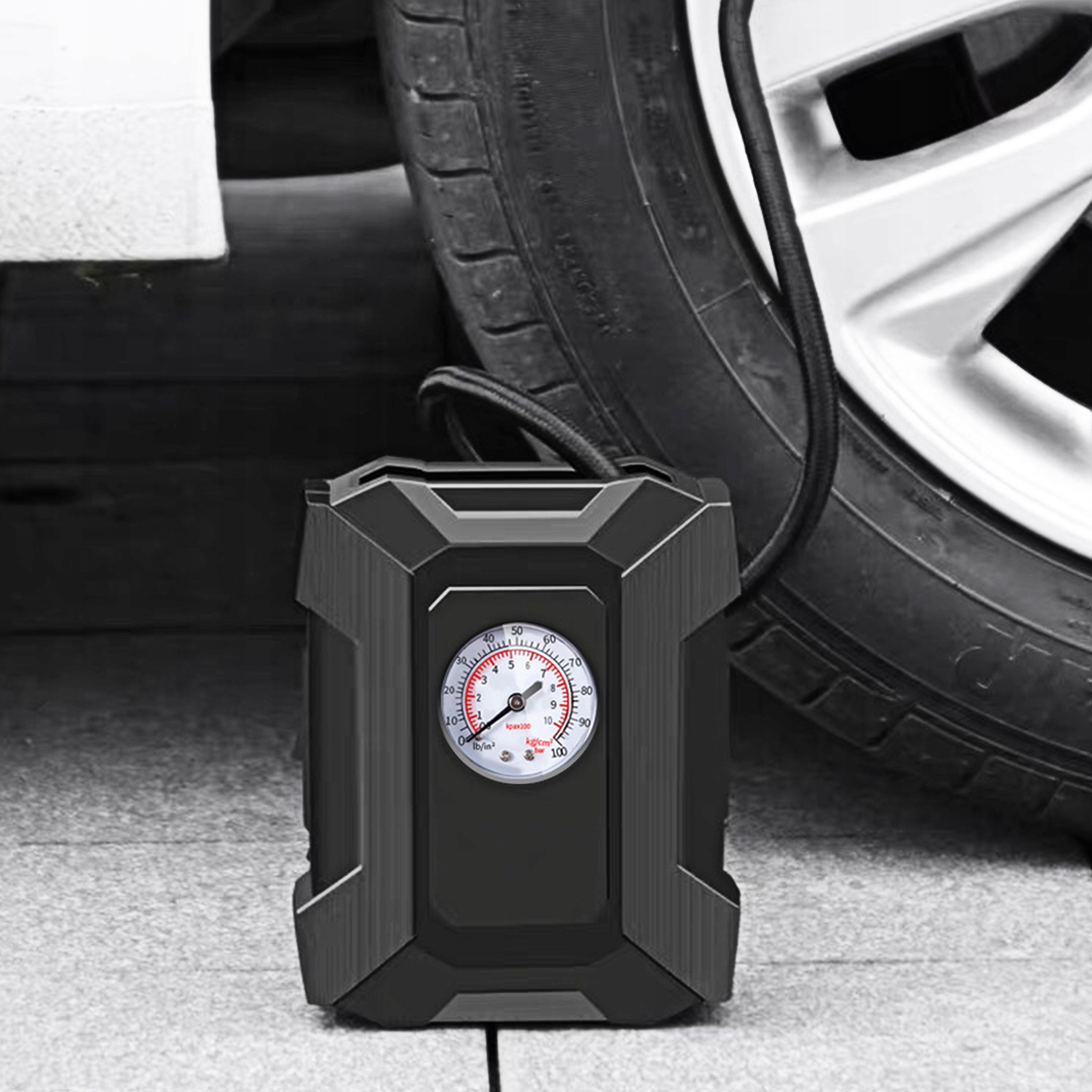 воздушный насос мощный, может точно измерять пресс шин и безопасен и практичен.