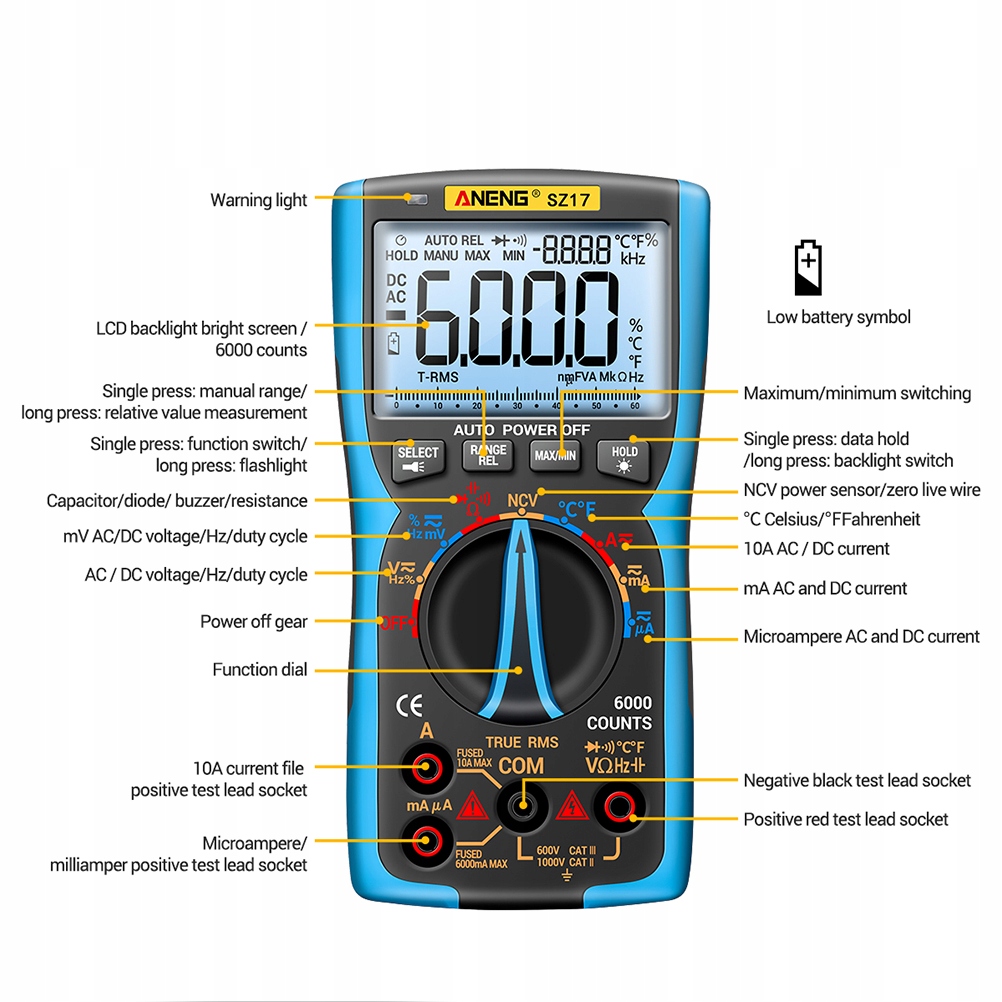 UA ток переменного тока: 600.0 UA ~ 6000ua