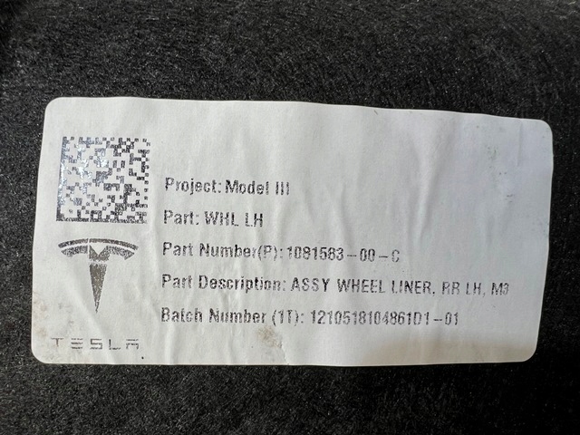 1081585-00-B - Tesla MODEL 3 АРКИ ЗАДНЕГО ЛЕВОГО КОЛЕС НОВЫЕ