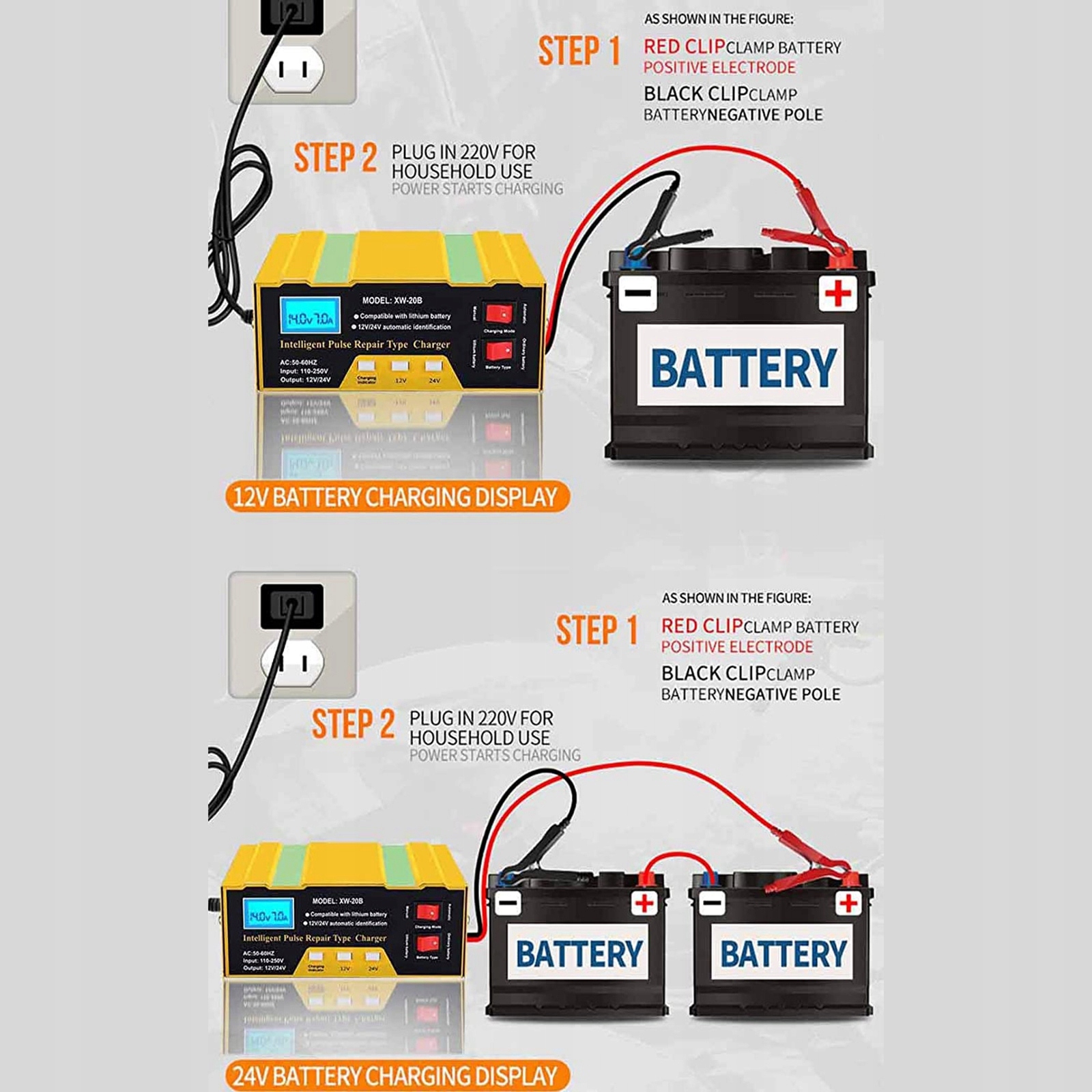 10A 12/24V электрическое автомобильное зарядное устройство автоматическое свинцовое зарядное устройство с ЖК-дисплеем