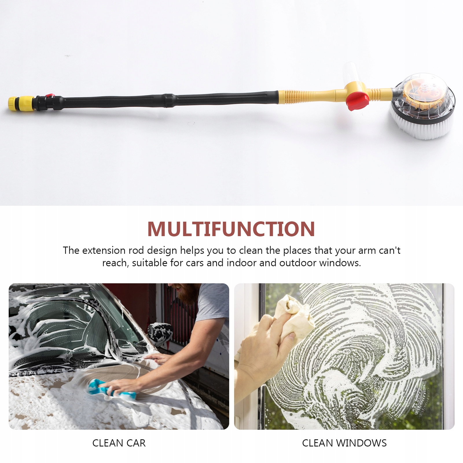 этот автоматический вращающийся выход воды не нуждается в электричестве. Это экономит время и энергию. Вода поступает в трубу, высокое давление привода заставляет воду толкать шестерню и заставляет ее работать автоматически. Вращающаяся швабра в стиле dwesign и пухлая головка щетки могут тщательно очищать, особенно сильно поглощая воду, защищая краску.п>