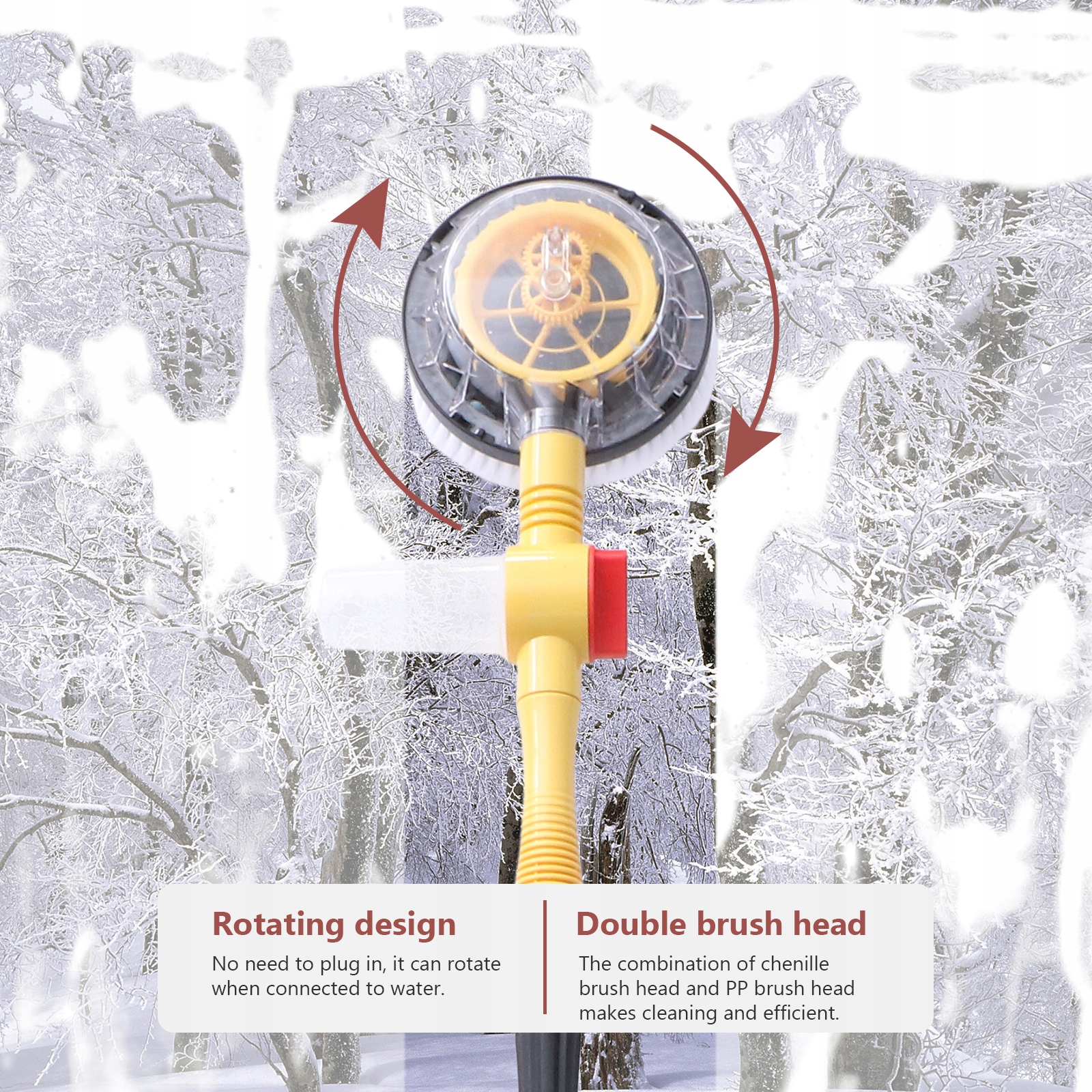 этот автоматический выход воды с вращением не нуждается в электричестве. Это экономит время и энергию. Вода течет в трубу, высокое давление заставляет воду толкать шестерню и заставляет ее работать автоматически. Вращающаяся швабра dwesign, мягкая и пухлая головка щетки может тщательно очищаться, особенно отличная способность поглощать воду, защищая лак.