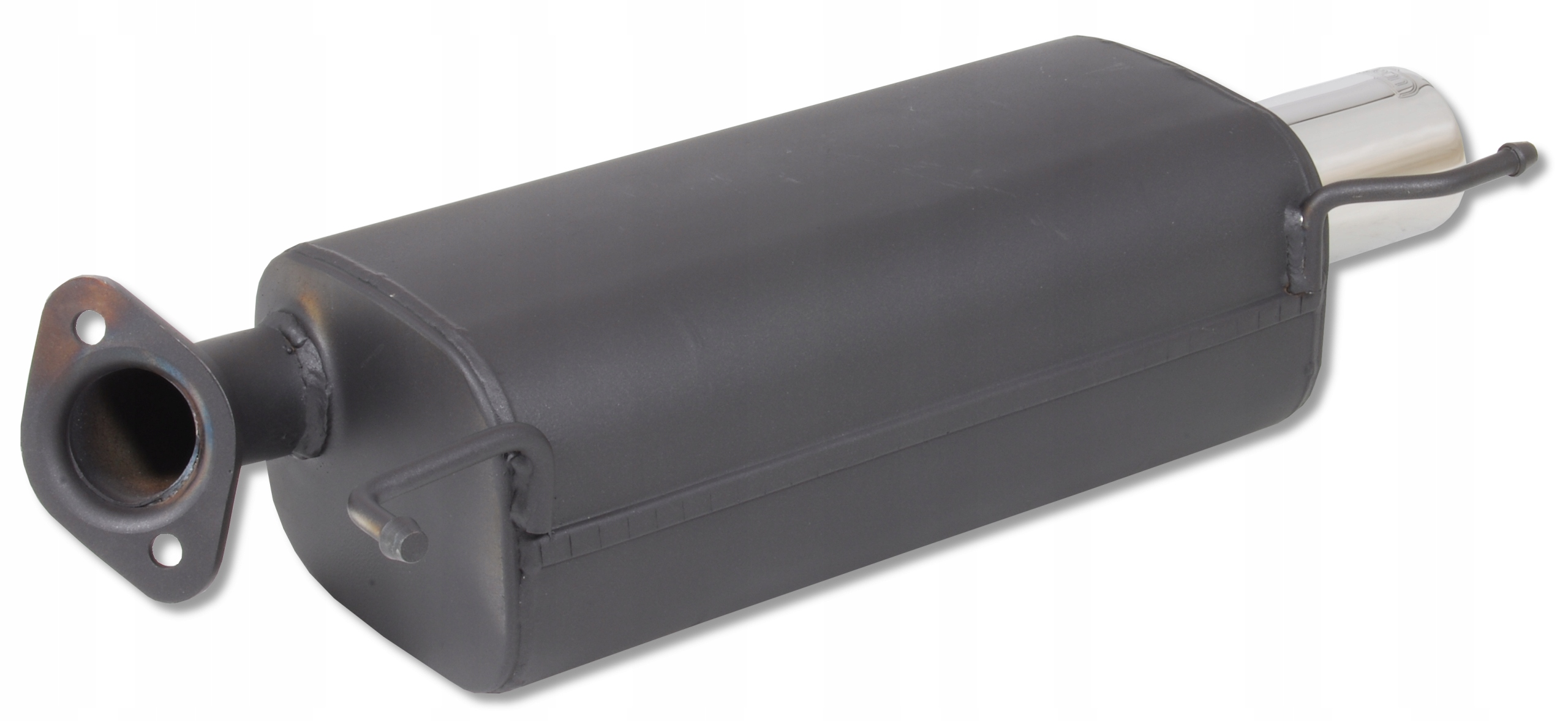 изделие полностью изготовлено изстали, защищенной от коррозии. Это сталь, покрытая слоем алюминия, который отделяет ее от доступа к кислороду и, таким образом, замедляет процесс коррозии. Слой алюминия присутствует как снаружи, так и изнутри. Кроме того, глушитель был покрыт термостойкой краской. все это увенчано декоративным наконечником из полированной нержавеющей стали.п>