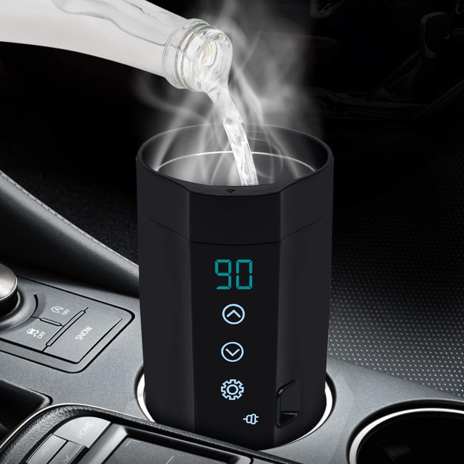 прохладный внешний вид: его круглая форма, универсальный черный цвет и гладкая поверхность придают этому автомобильному чайнику современный и простой вид, добавляя прохладные и стильные элементы в автомобиль.