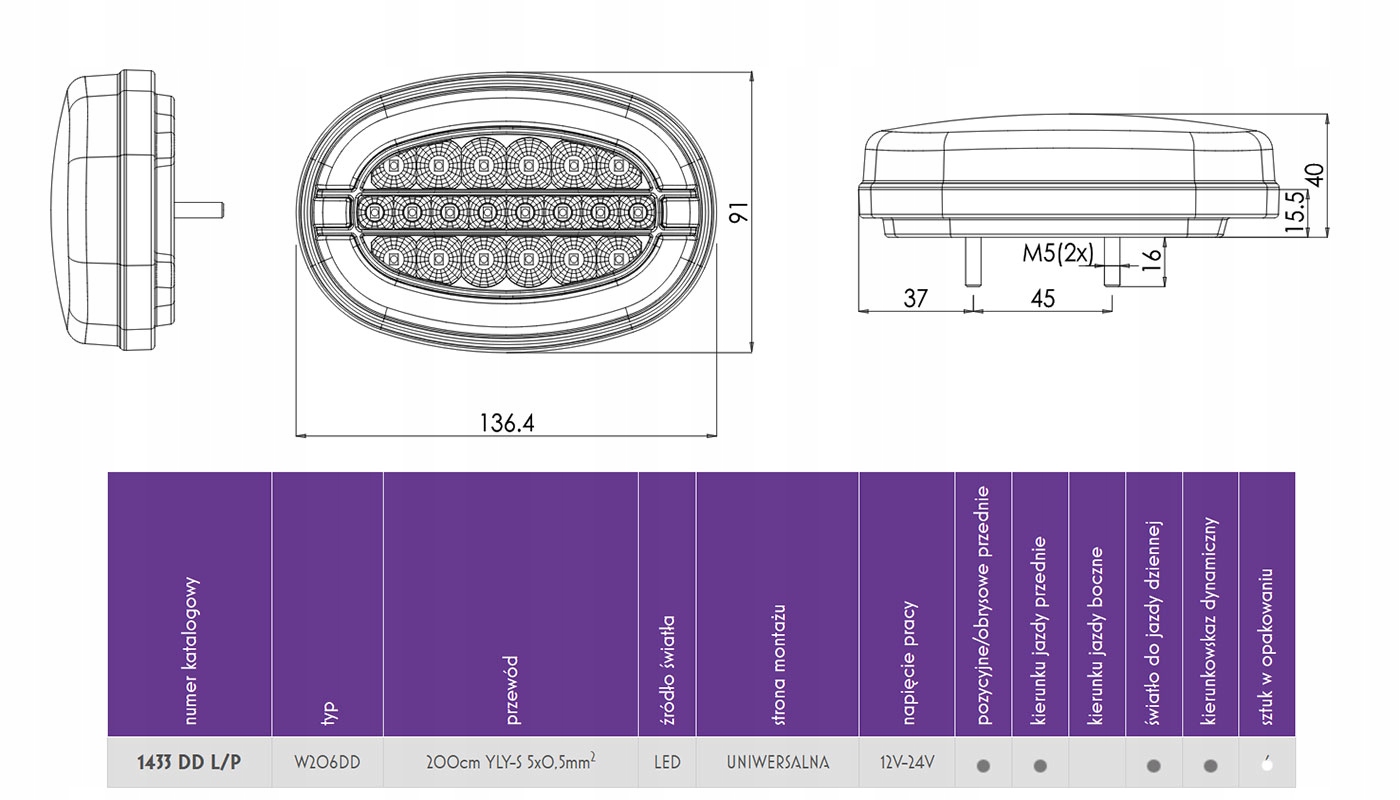 передняя комбинированная лампа 3-функции левый или правый leda 12/24V (1шт)