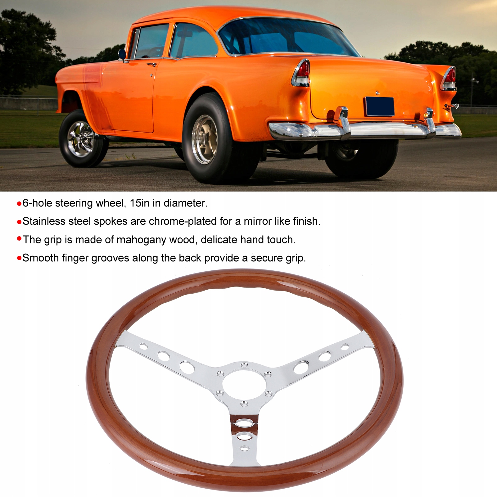 1. Руль диаметром 15 дюймов с 6 отверстиями, разумный размер позволяет водителю совершать те же повороты с меньшими усилиями.