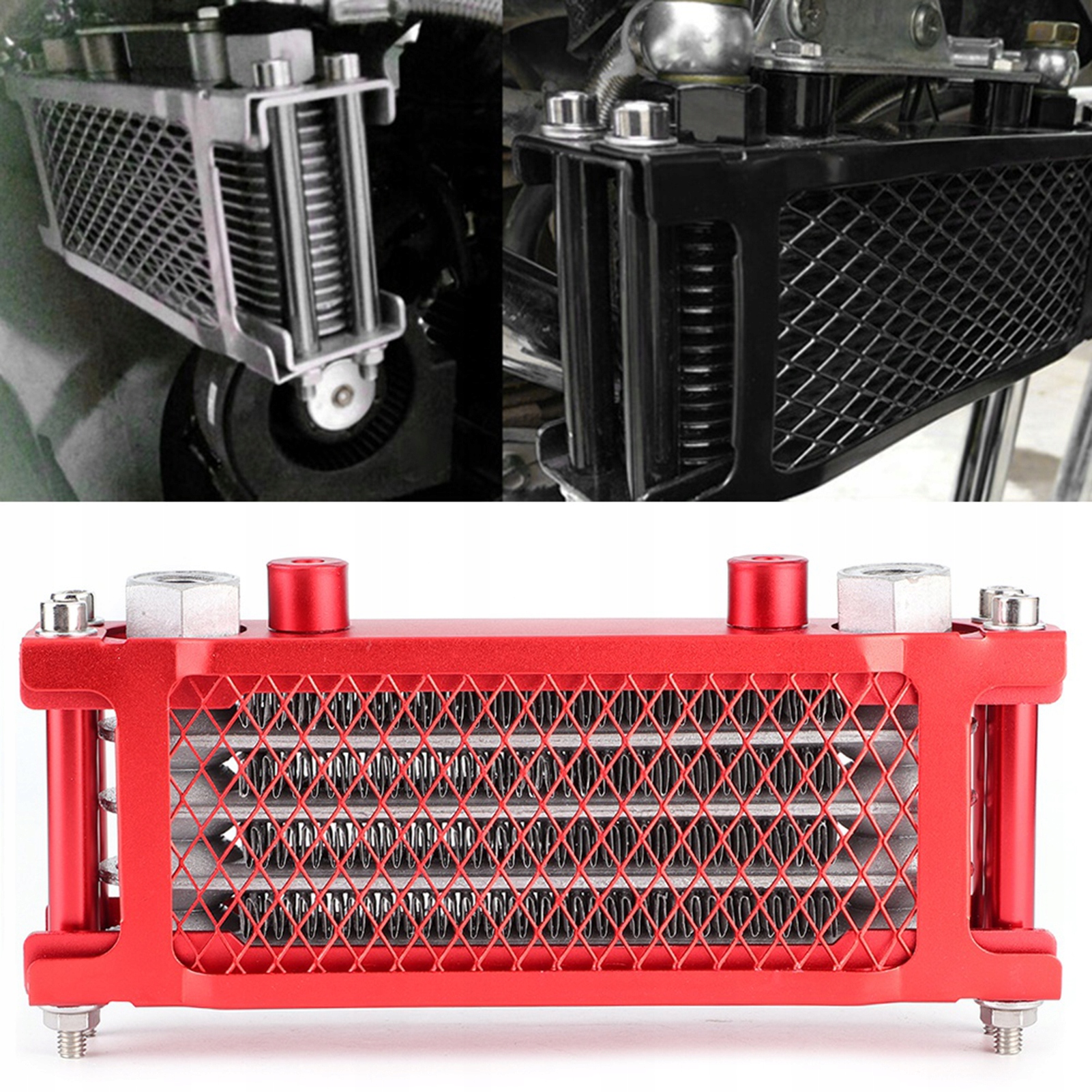 Применение: для внедорожников объемом 100–250 куб.см, машин-обезьян, квадроциклы, четырехколесные мотоциклы, мотоциклы красного цвета, универсальный маслоохладитель.