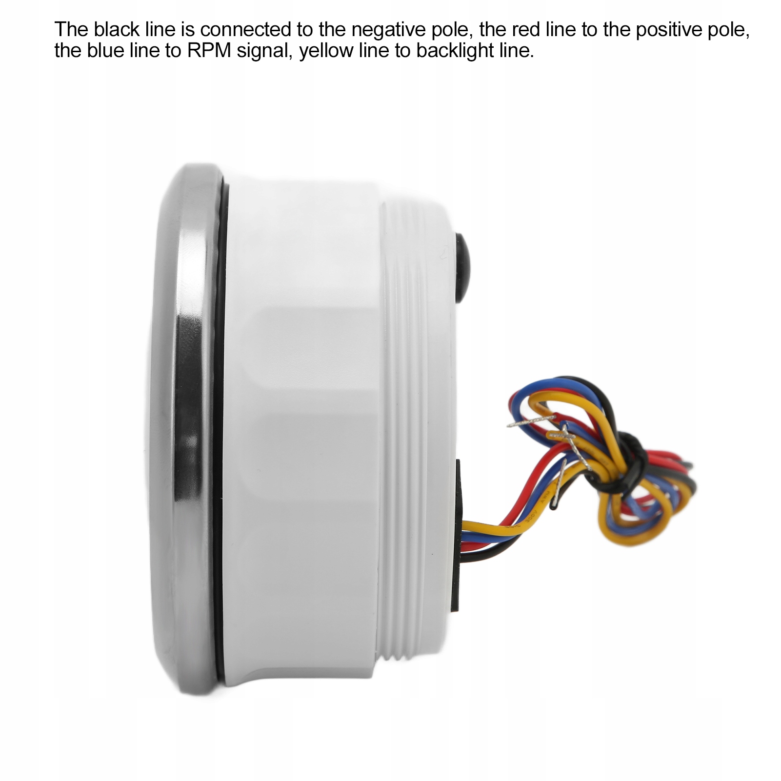 • режим проводки: Черная линия подключена к отрицательному полюсу, красная линия к положительному полюсу, синяя линия к сигналу об / мин, желтая линия для подсветки. Инструкция по эксплуатации: 1. Нажмите и удерживайте черную кнопку с за прибором в течение 3 секунд, чтобы войти в режим настройки (выйдите из режима настройки, если через 3 секунды операция не будет выполнена)