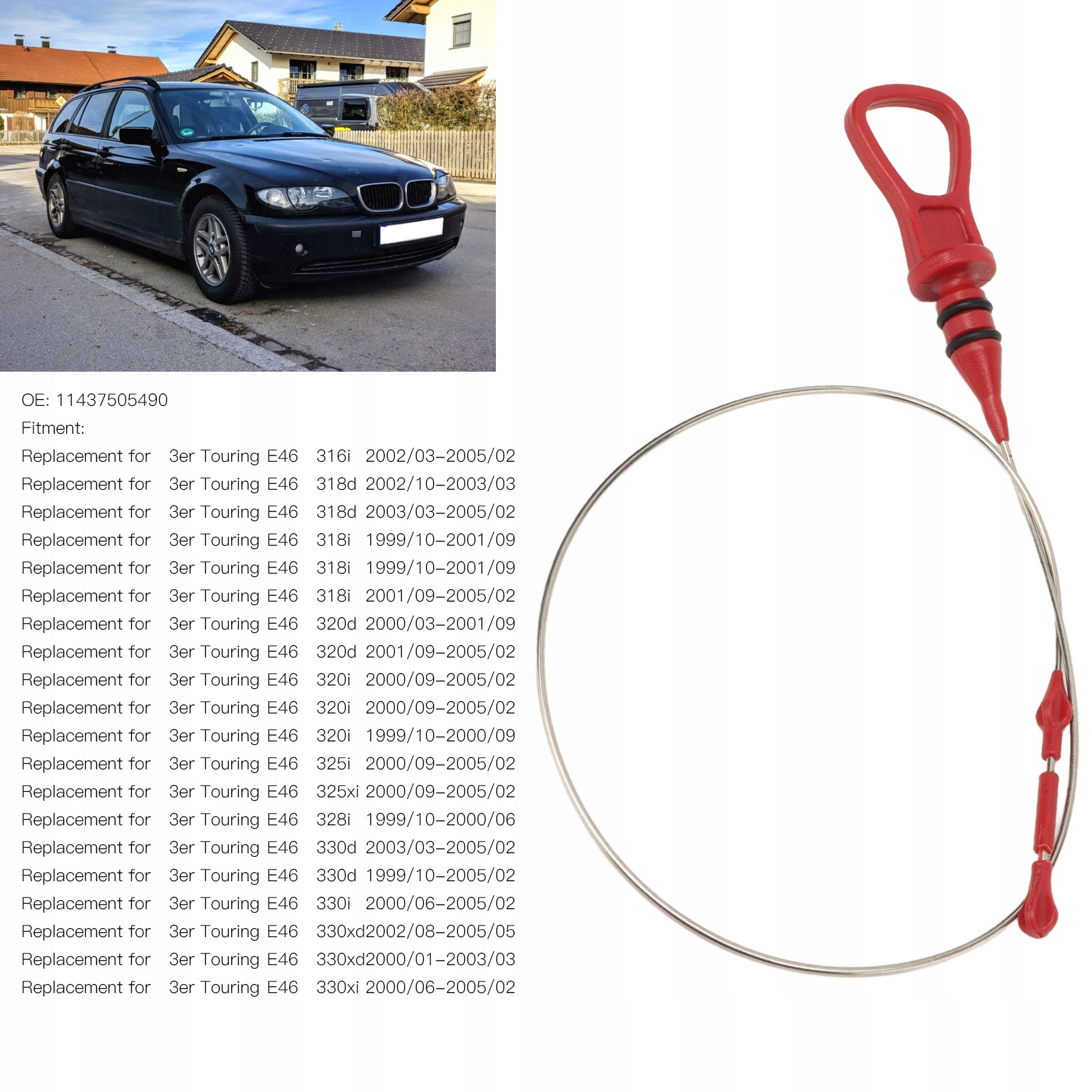 1. Применимость: масляный щуп двигателя заменяет E46 316i 318d 318i 320d 320i 325i 25xi 328i 330d 330i 330xd 330xi.