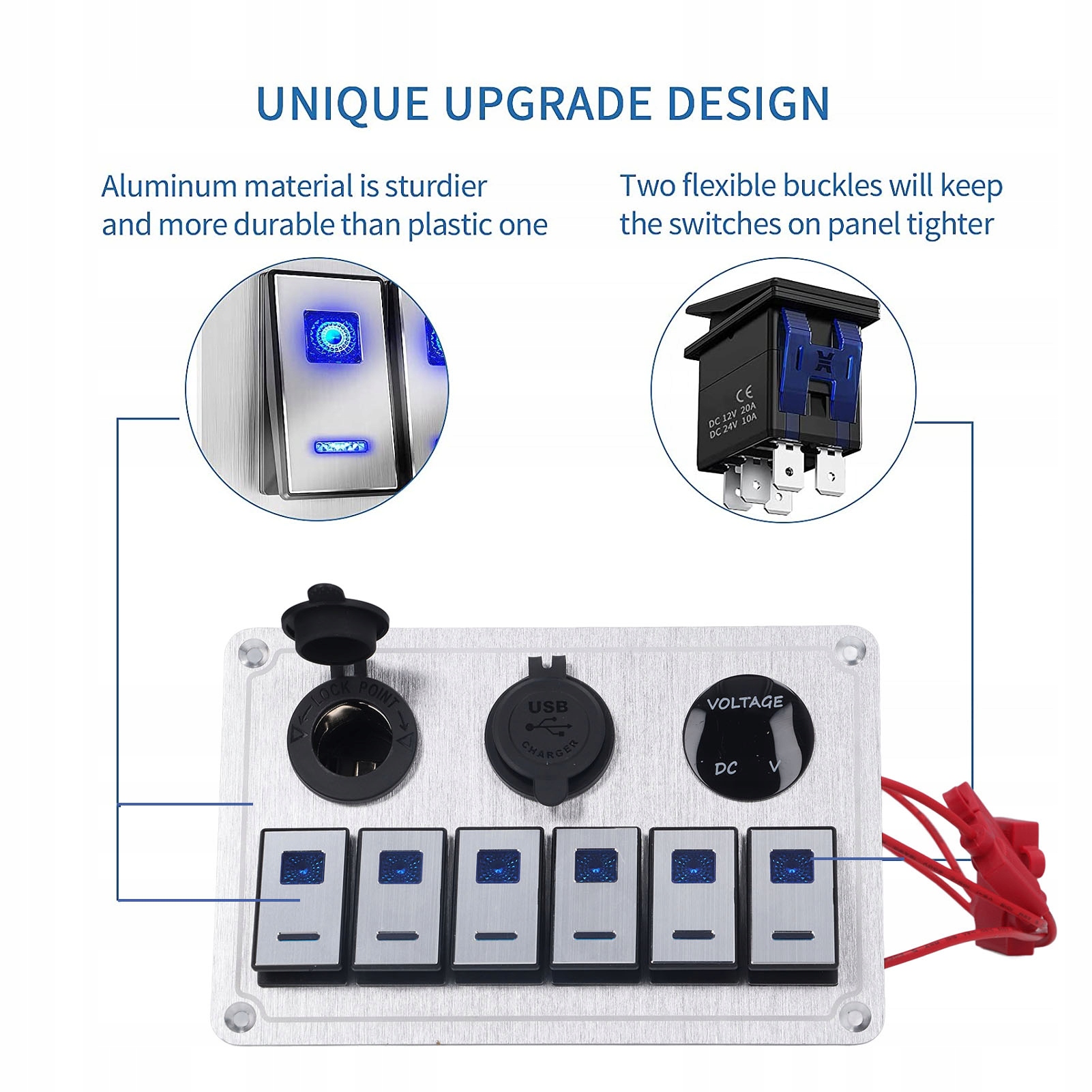 4. Гарантия безопасности: эта панель с клавишным переключателем оснащена цифровым вольтметром и двойным USB-портом для зарядного устройства на 2,1 А, что позволяет управлять различными схемами и заряжать. Каждая панель переключателей оснащена 6 переключателями защиты от перегрузки, поэтому риск перегрева устройства отсутствует.