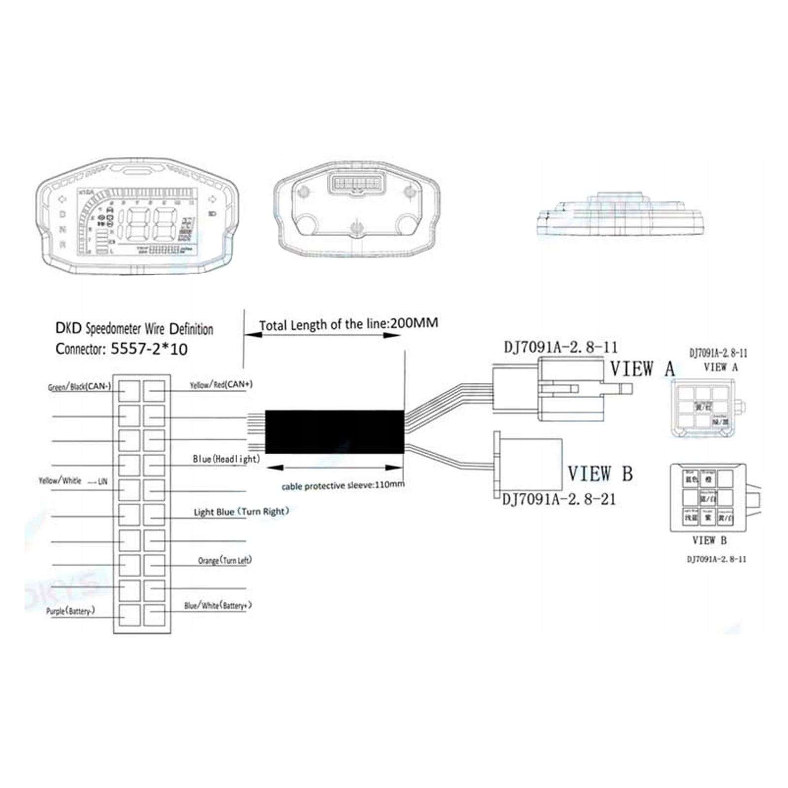 2. Регулируемая связь: этот спидометр поддерживает связь LIN/CAN-BUS, оба из которых позволяют контроллеру работать со спидометром для отображения напряжения батареи.
