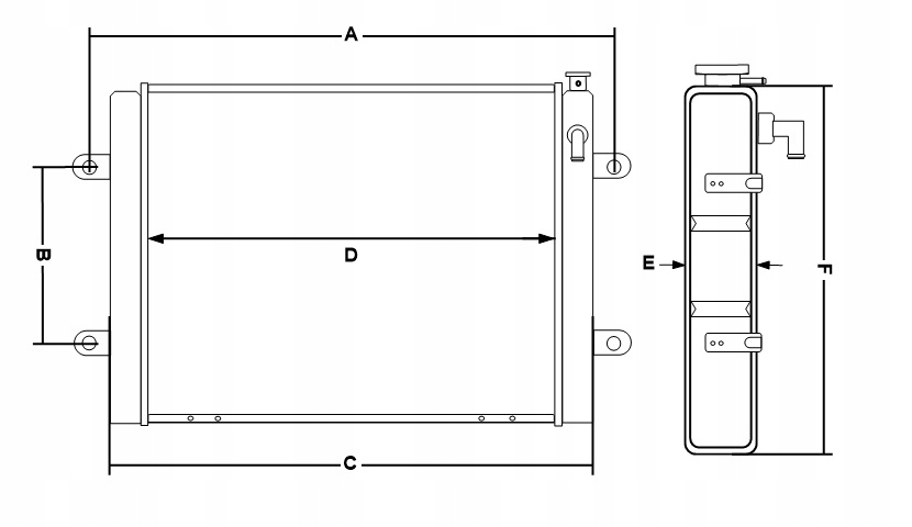 - E (ширина радиатора) - 90 мм