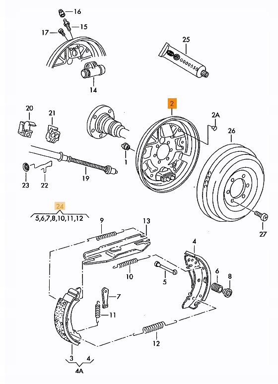 комплект: левый якорный диск + челюсти + цилиндр + монтажные пружины < /P>