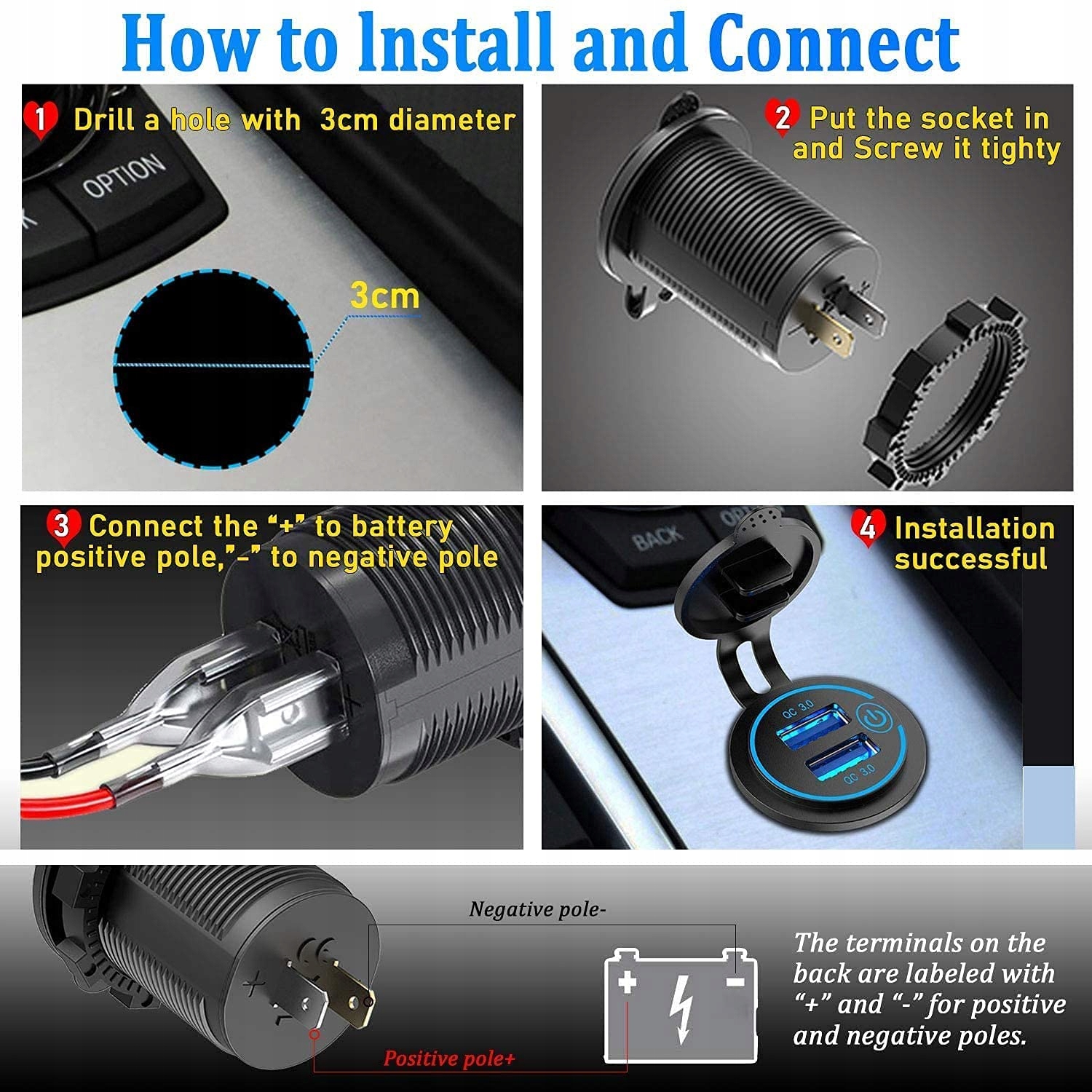 Cost Effective2Pack Provides a Spare able USB Outlet to Keep in Your Travel Bag or a Second Vehicle. Потратьте меньше денег на лучший опыт покупок. 12V USB OUTLET HighSpeed ChargingDual USB Outlet s Power Two Devices at Full Speed with QC 3.0 Charging Technology up to 4x Faster than Conventional Charging and Deliver the Fastest possible Charge to All Nonquick Charge Device."Builtin Smart IC Outputs Stable Current Without Парня. Convenient Touch SwitchThis USB Socket Designed with a Touch Power Switch for Energysaving and Devices Protection. Два USB-переключателя и синий светодиод никогда не должны беспокоиться о сливной батарее. Универсальный CompatibilityThis USB Outlet подходит для автомобиля лодка морской мотоцикл Гольф Cart ATV RV и т. д. And Works with All USBPowered Devices Including Apple amp Android Smartphones amp Tablets Video Games Controllers Power Banks Sports Watch etc. What You GetBuy It now and Get Two Excellent 2 Fast Charging USB Outlet Worryfree 60day Refund Guarantee 5year Replacement and Lifetime Support. Если вы не удовлетворены этим USB-выходом, пожалуйста, не обращайтесь к нам по электронной почте, мы предложим вам полный возврат или Новый в первый раз. 12V USB OUTLET 12V USB OUTLET 12V USB OUTLET 12V USB OUTLET