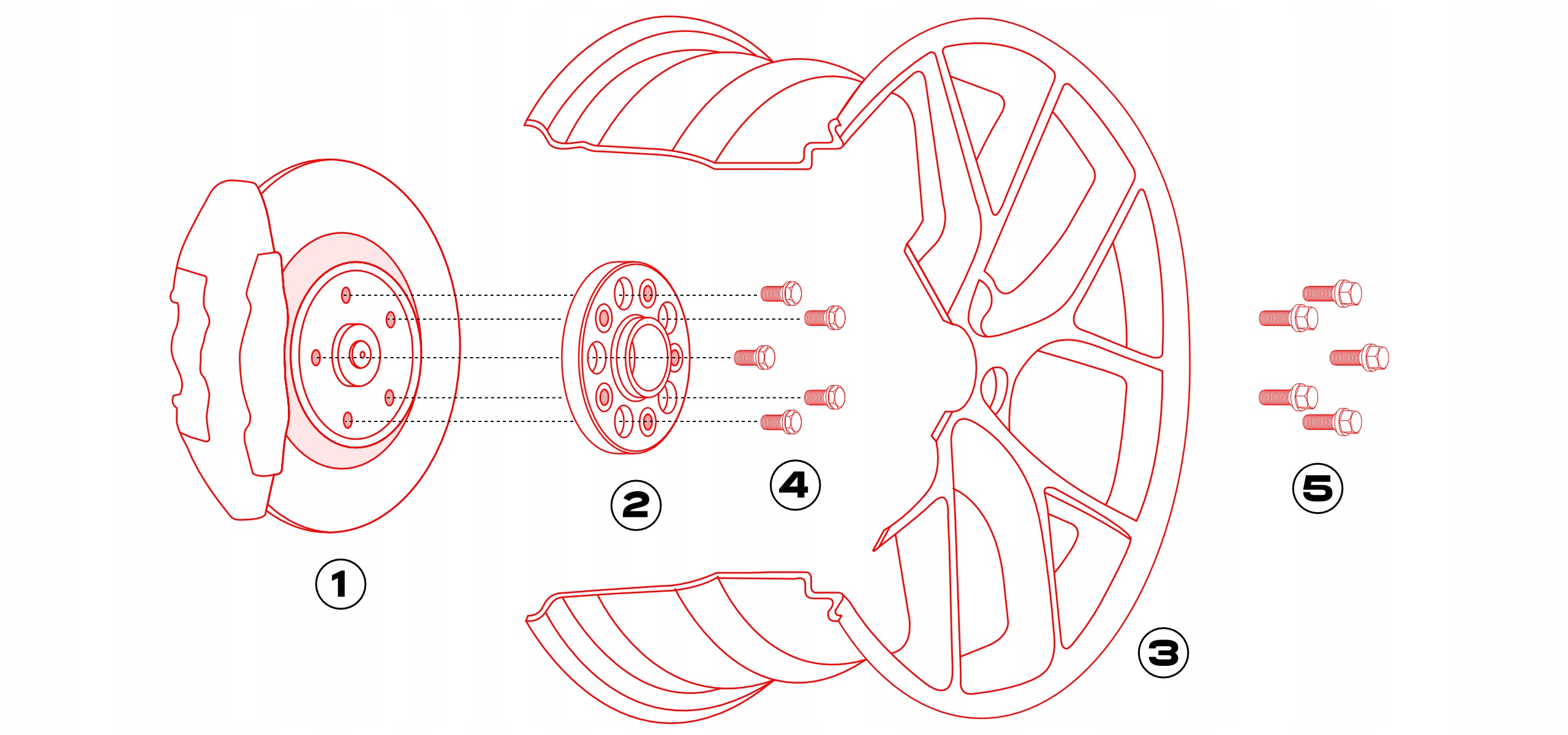 расстояние? зажимается между ступицей автомобиля? и ободом? с помощью специальных болтов?, которые прилагаются в комплекте. Обод фиксируется на расстоянии с помощью стандартных винтов½.