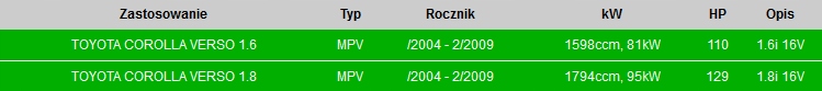 - 1.8 (ZNR11_) (1ZZ-FE) 1794ccm 129KM/95kw 2004/04-2009/03