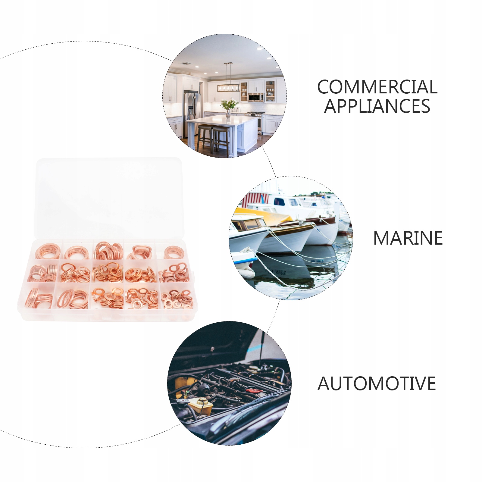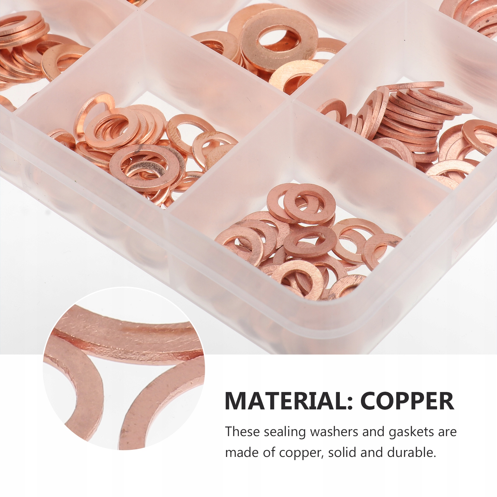 В комплект входит 280 шт. Плоские уплотнения различных размеров. Эти шайбы и прокладки изготовлены из высококачественной меди, прочной и долговечной. Они обладают отличной электропроводностью и теплопроводностью. Отличный набор для заглушек масляного поддона, воды, топлива и сантехнических фитингов. Идеально подходит для электрического соединения в бытовых и коммерческих, автомобильных и морских приборах, где источник питания имеет резьбовое / винтовое соединение.
