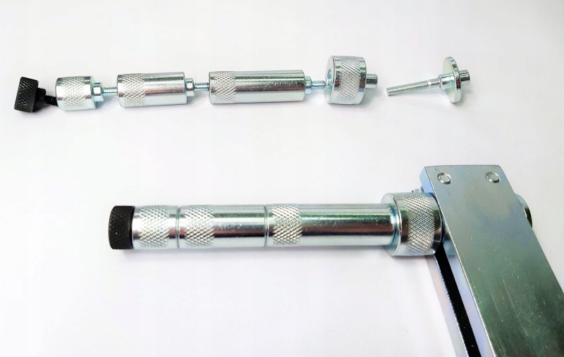- тройная рама и 4 регулируемые опоры - каждая из опор состоит из 3 элементов: 60 мм/40 мм/20 мм + 10 мм ножка из закаленной стали. Регулируемые ножки позволяют регулировать высоту съемника. Длинная балка 500 мм, более короткие поперечные балки 300 мм