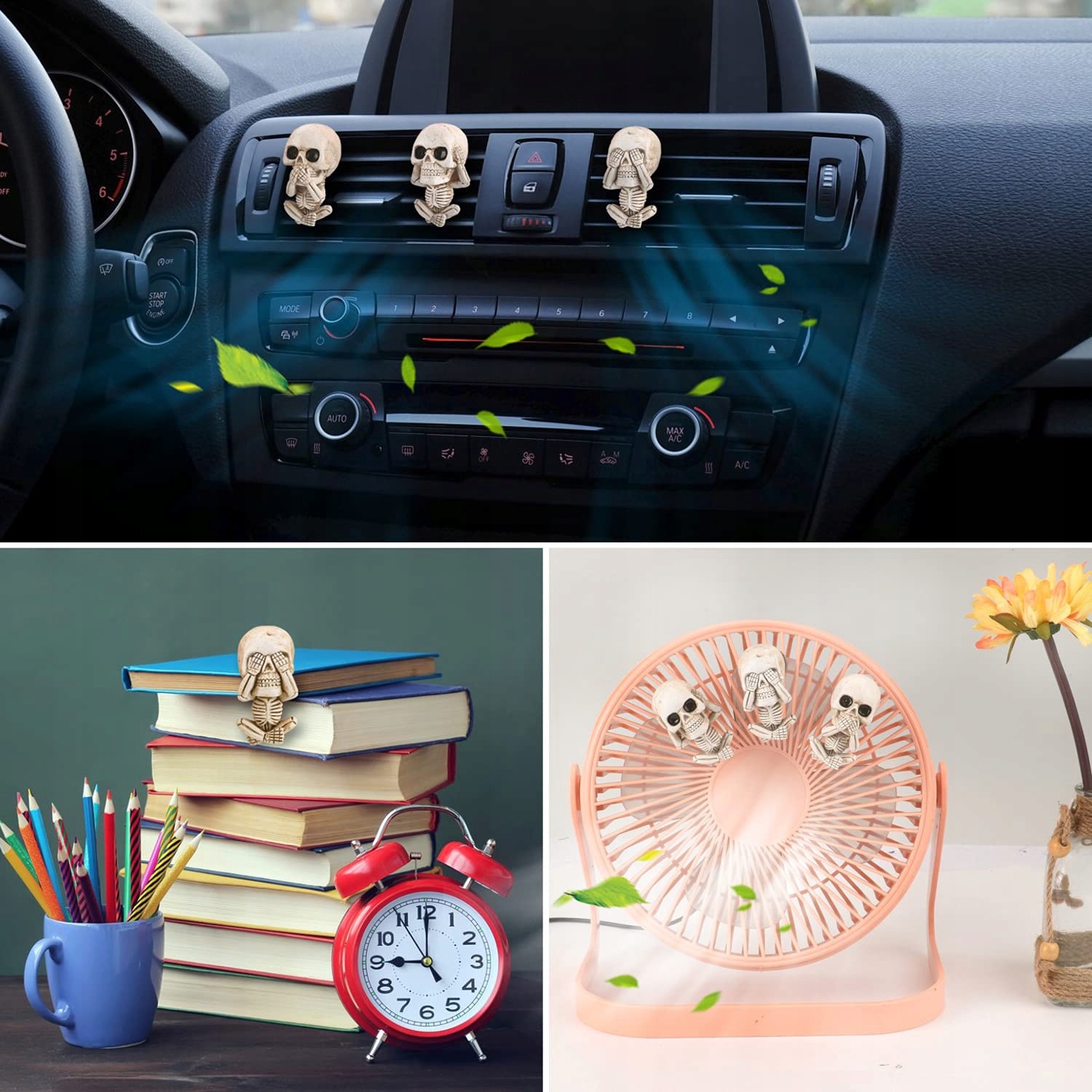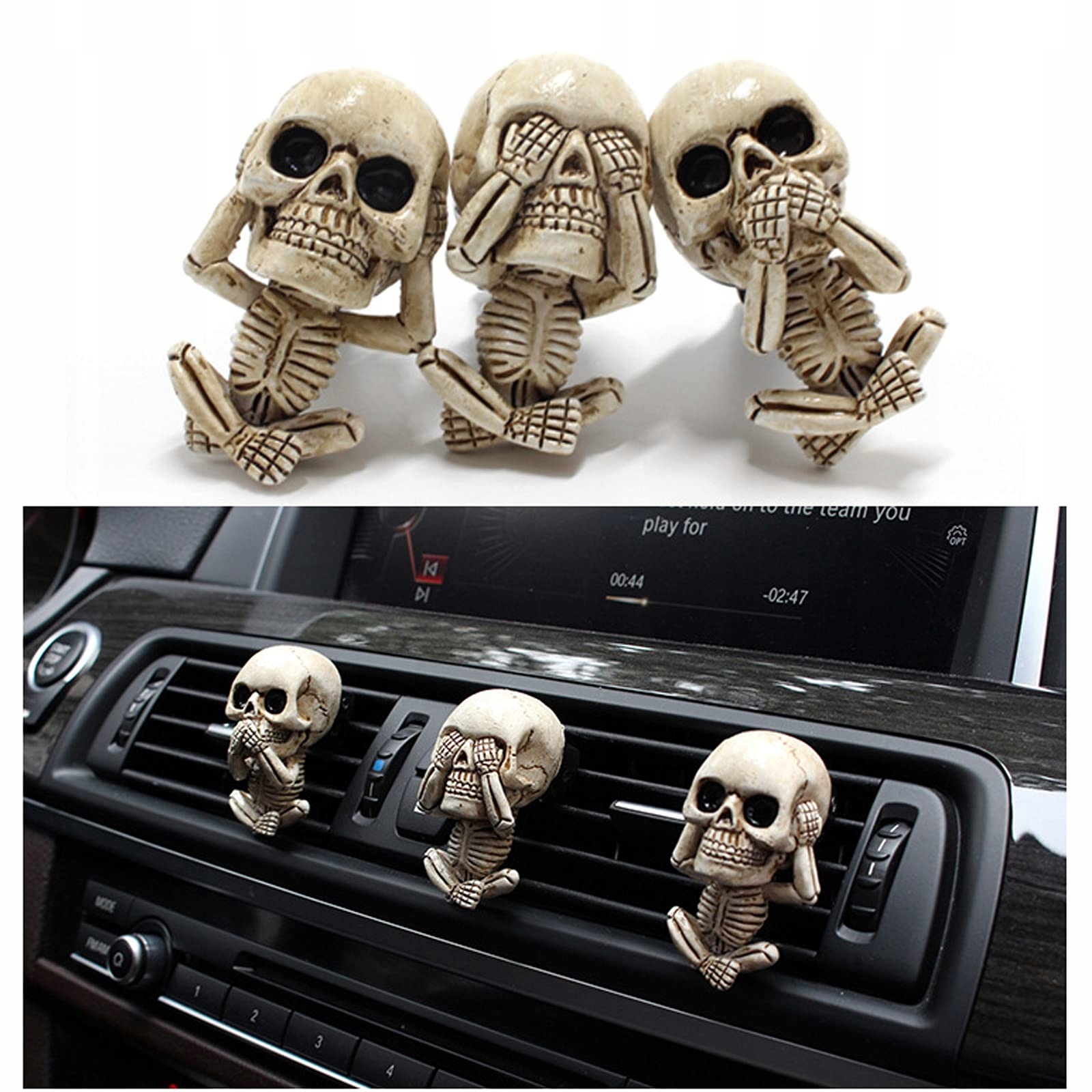 набор автомобильных украшений содержит 3 элемента классического скелета See, Hear, Speak No Evil. У него есть черепа типа "see no evil", "hear no evil", "speak no evil", которые представляют собой классную вариацию классических черепов. Этот набор черепов-специальная коллекция для каждого любителя черепов.Подходящий размер для украшения автомобиля.