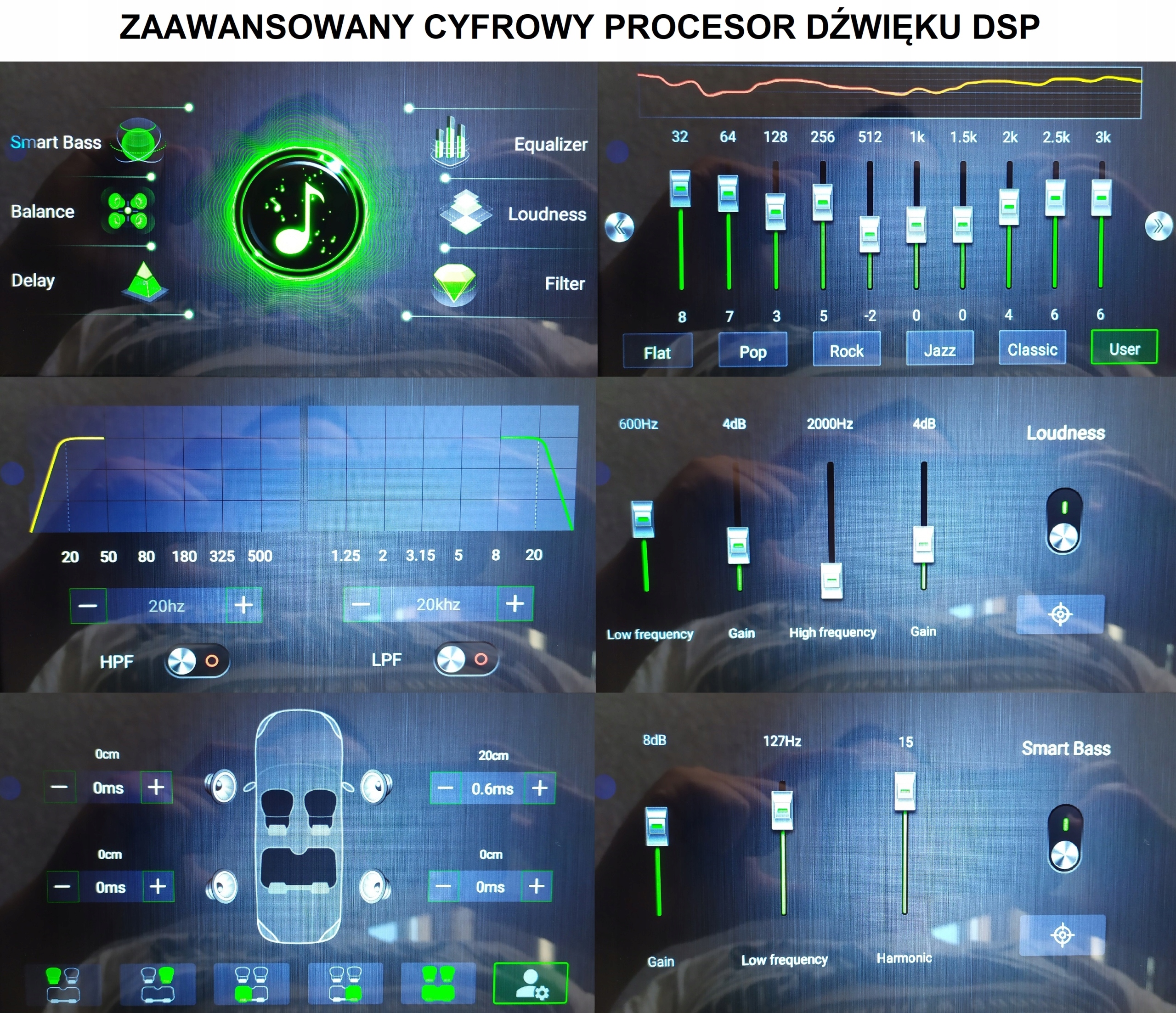 цифровой звуковой процессор и графический эквалайзер(EQ ) обеспечивают высококачественный звук, который удовлетворит даже самых требовательных любителей музыки! Встроено несколько режимов, определенных эквалайзером (рок, поп, джаз и т.д.), а также была оставлена возможность любой коррекции пользователем. Он имеет функцию LOUDNESS. Радио также имеет опцию FADER, которую мы можем изменить соотношение звука между отдельными динамиками.