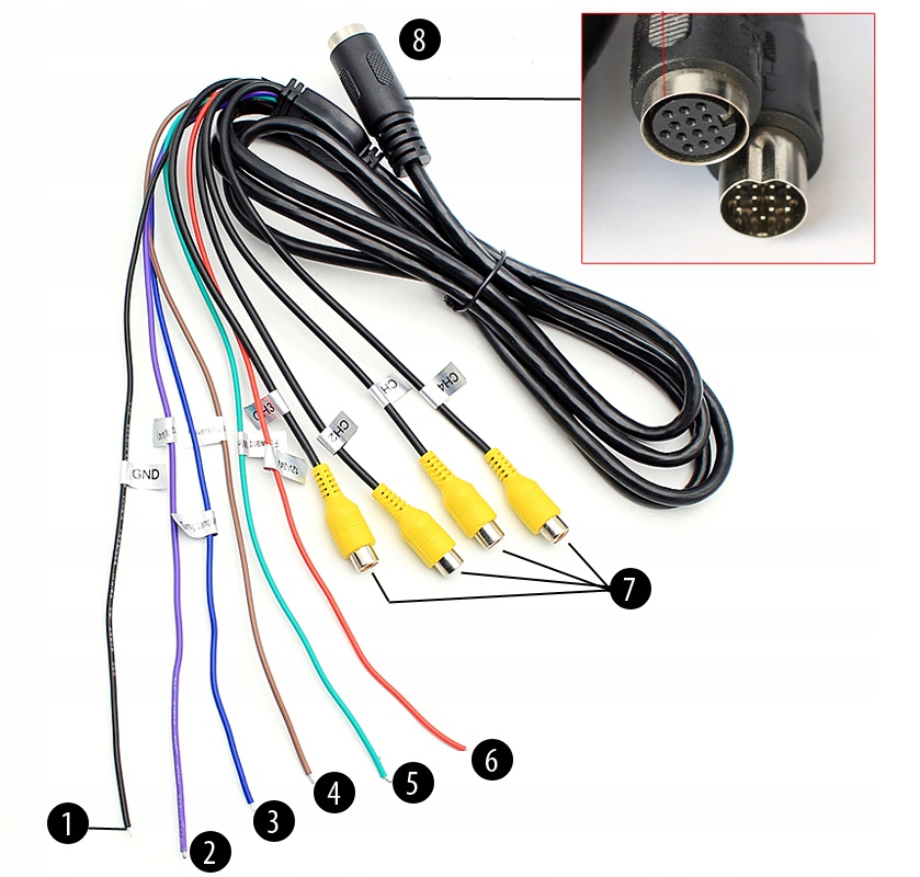на изображении рядом с Лучом под номерами 2-5 можно увидеть активаторы отдельных видеосигналов. Эти провода при получении напряжения 12-24 В автоматически включат на полноразмерном мониторе данный канал (Канал 1 или канал 2 или канал 3 или канал 4).