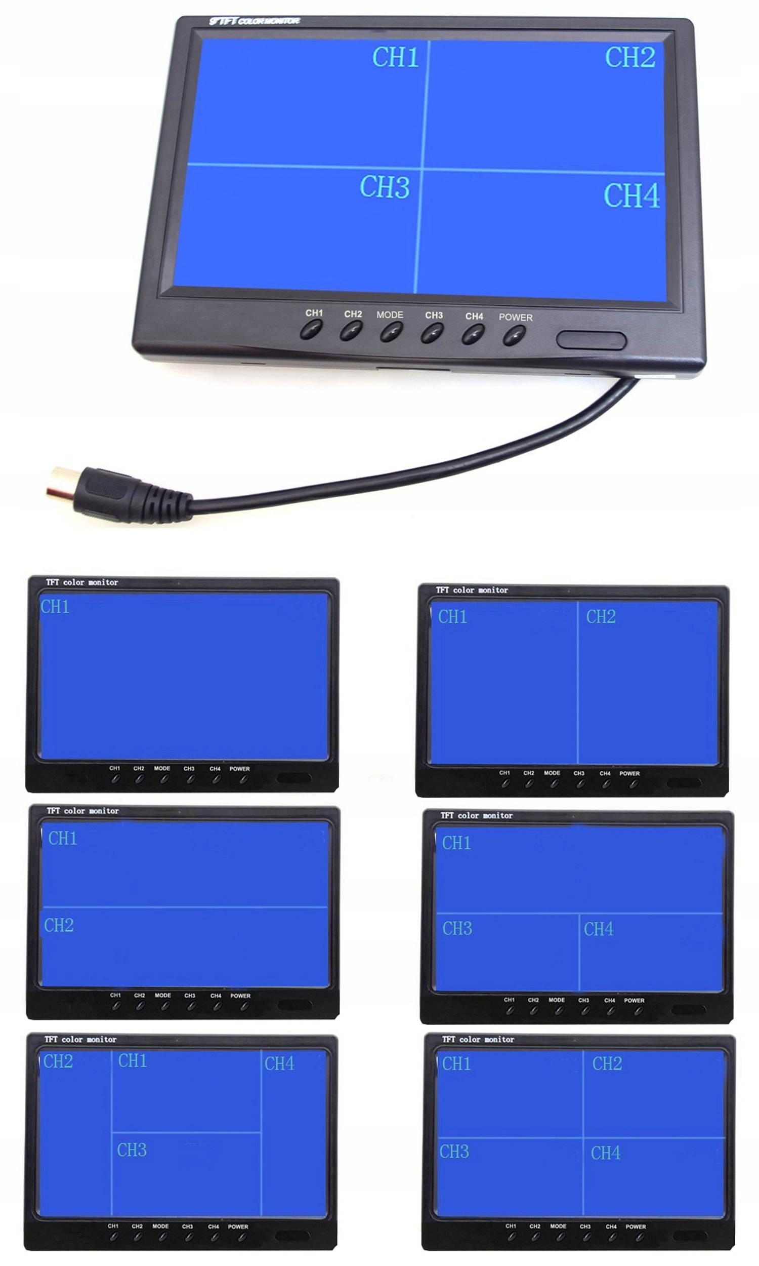 благодаря системе разделенного экрана дисплей может одновременно отображать сигнал, исходящий от четырех камер.