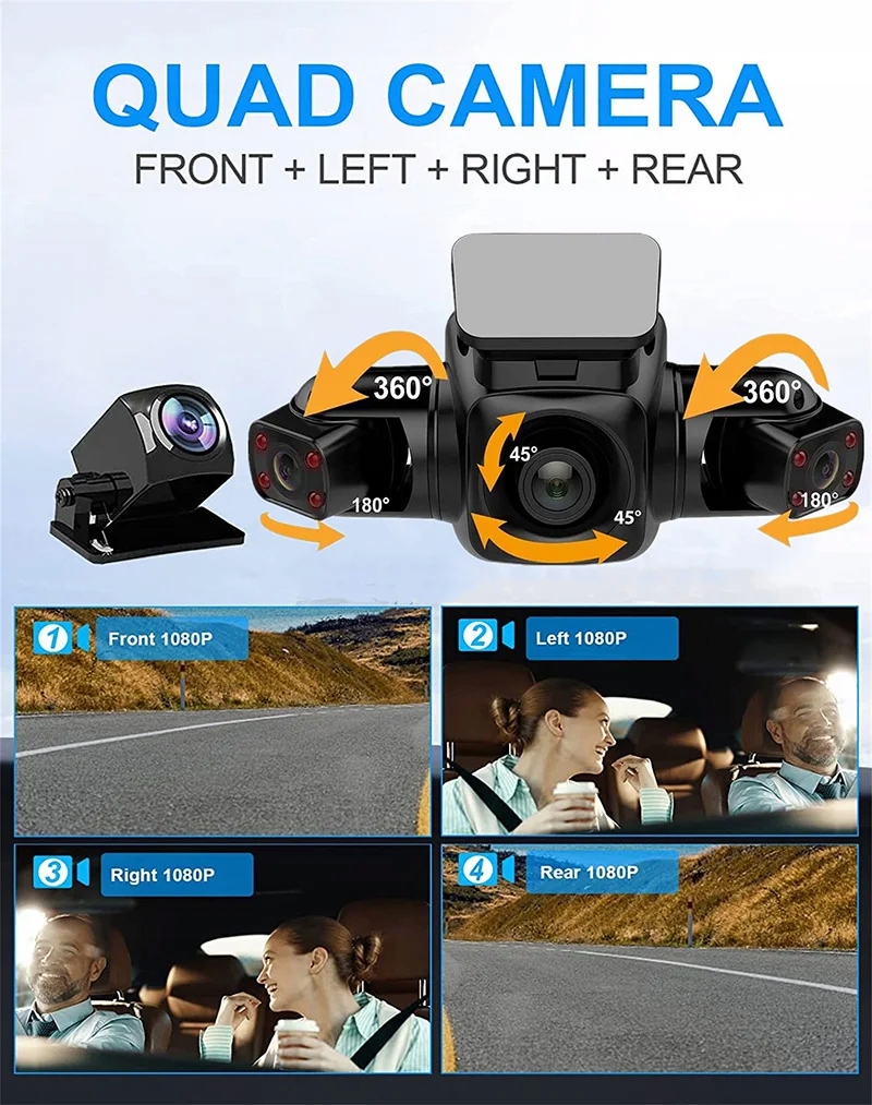 4-канальная видеорегистратор, автомобильная камера Full HD 1080P, видеорегистратор переднего и заднего вида, видеорегистратор, автомобильная камера, ночная версия с облачной потоковой передачей