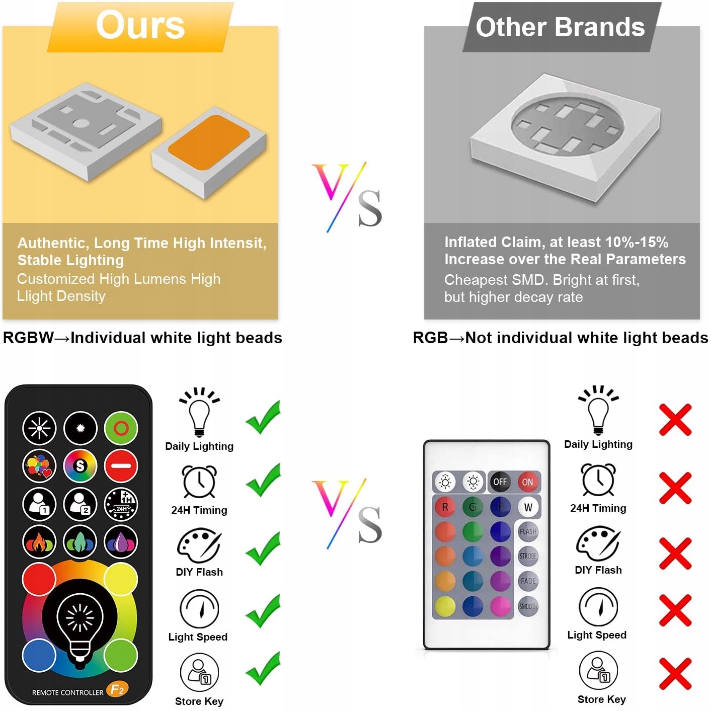 【пульт дистанционного управления и функция памяти】- одна кнопка для ежедневного освещения, DIY, многоцветный и 4 режима (гладкий, романтический, уютный, свежий). Вы можете установить яркость. Хороший инфракрасный пульт дистанционного управления с инновационной технологией. При выключении и повторном включении свет может запомнить последнюю настройку. Экономьте время и наслаждайтесь любимым цветом.