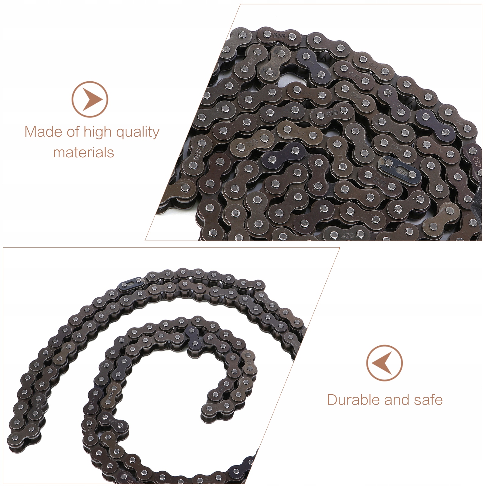 ✅Хотите прочную мотоциклетную цепь? ты ищешь это? Это внедорожная мотоциклетная цепь из металлического материала, она очень прочная и может использоваться в течение длительного времени. Прочная мотоциклетная цепь подарит вам чувство безопасности. Позвольте вам безопасно ездить на мотоцикле.