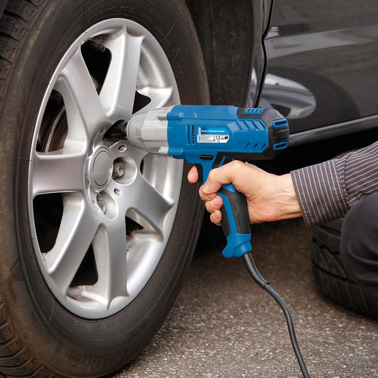 Мощный ударный гайковерт Expert на 230 В от Cartrend позволяет легко менять автомобильные шины. Максимальный крутящий момент составляет 300 Нм, при затяжке его следует ограничить до 100 Нм во избежание повреждения обода. Ударный гайковерт идеально подходит для работы с застрявшими ржавыми болтами. Кулисный переключатель можно использовать для быстрого переключения между вращением по часовой стрелке и против часовой стрелки.