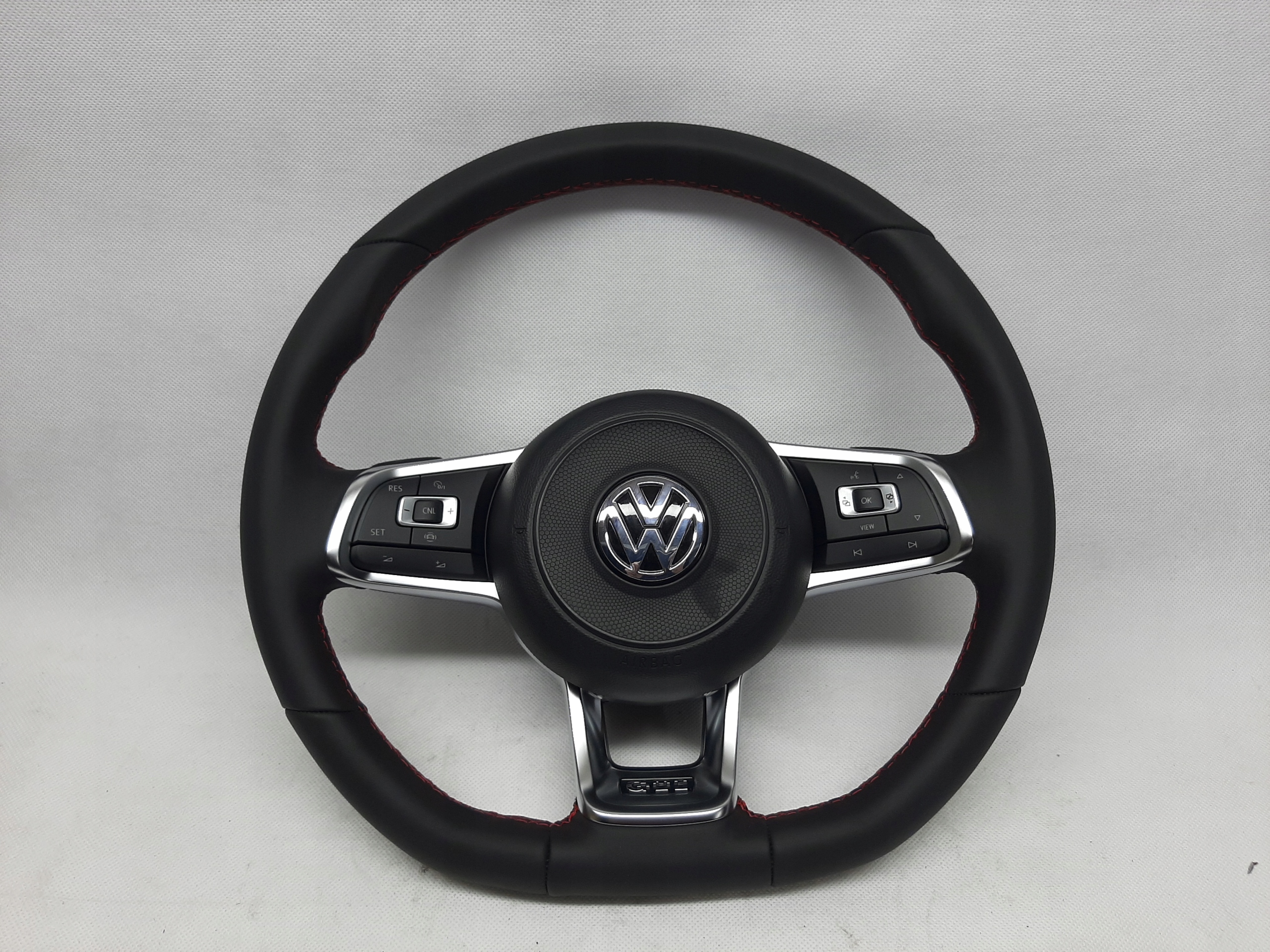 руль кожаный черный многофункциональный с переключателями передач, прошитый красной нитью в комплекте с подушкой безопасности для