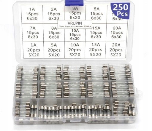 6X30 5X20 - НАБОР СТЕКЛЯННЫХ ПЛАВКИХ ПРЕДОХРАНИТЕЛЕЙ 250 ШТ.