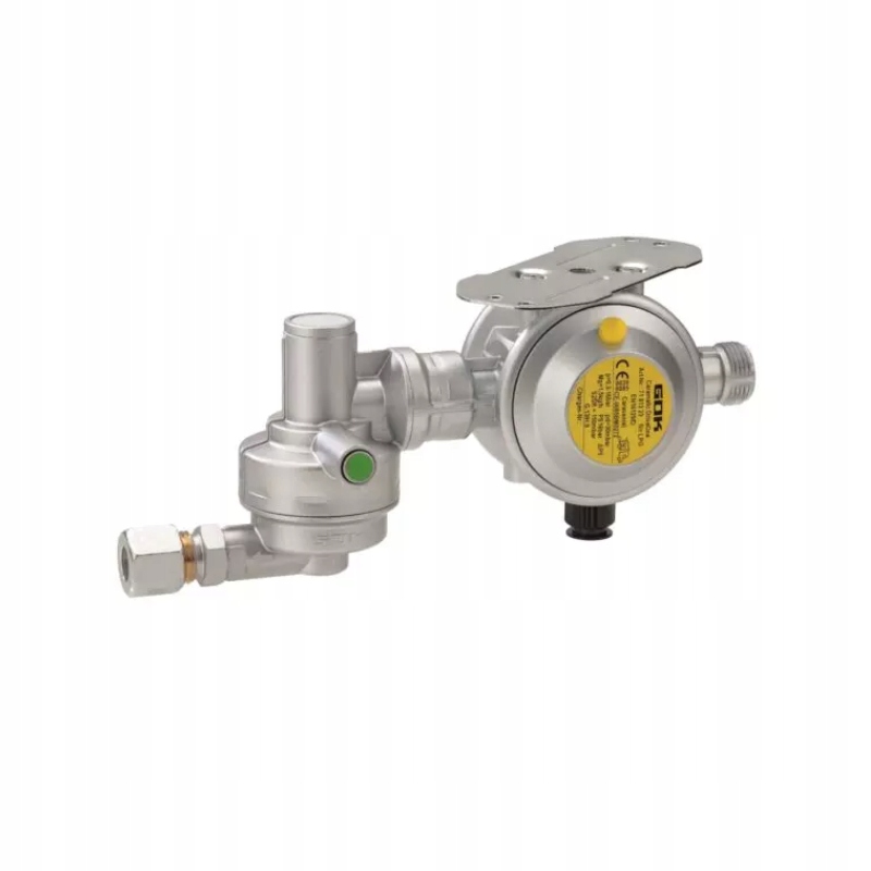 редуктор в сборе с защитой для эксплуатации однобутных установок в прицепах и автофургонах во время движения. Двухступенчатый предохранительный редуктор давления "S2SR" (Safety two Stages Controller) - это два последовательно соединенных редуктора давления. Если одна из двух ступеней редуктора выходит из строя, например, из-за загрязнения или других посторонних предметов в клапане, второй уровень редуктора выполняет функцию уменьшения до 150 мбар.п>