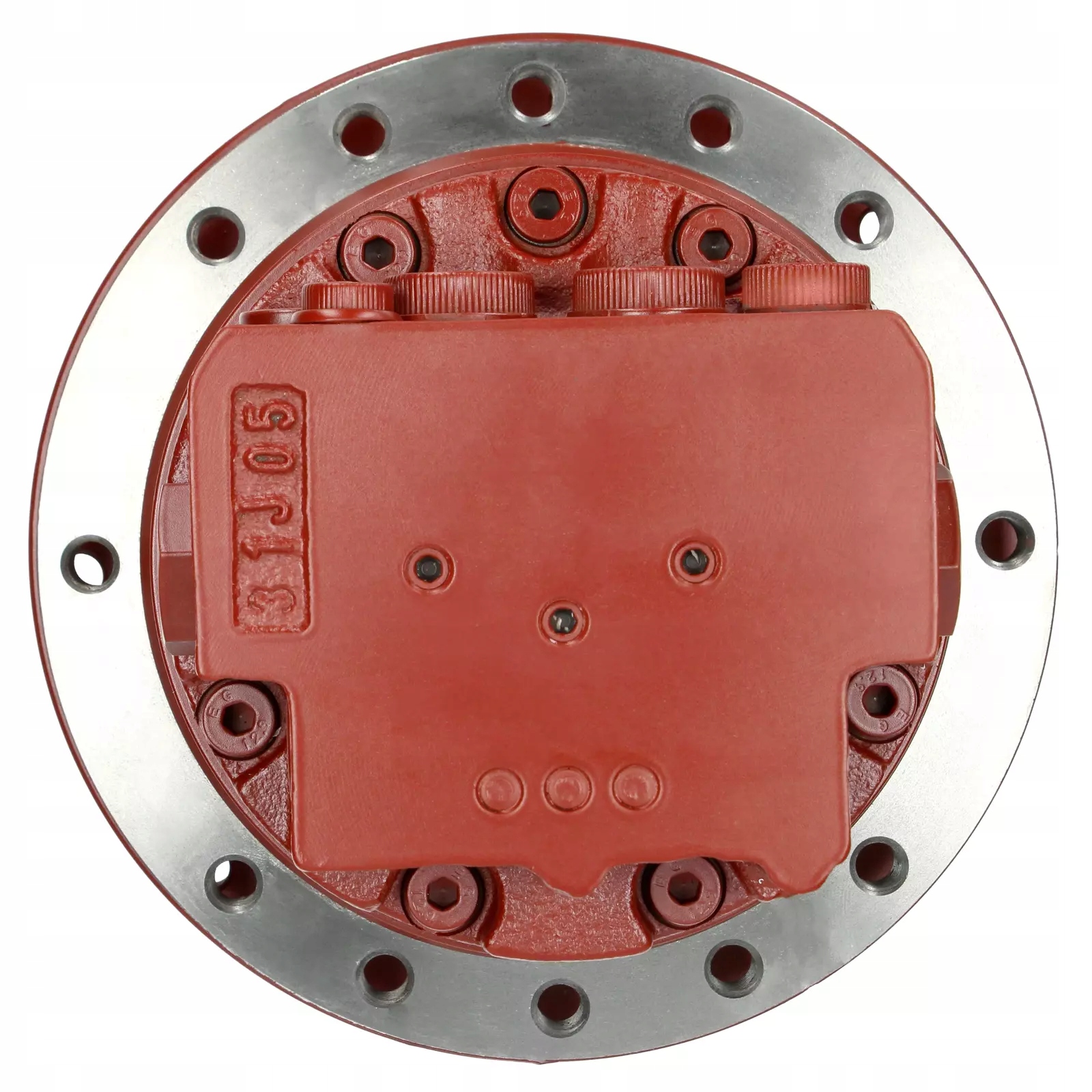 гидромотор имеет8 отверстий для крепления к раме,9 отверстий для крепления ведущего колеса и 160 мм в диаметредля крепления ведущего колеса.
