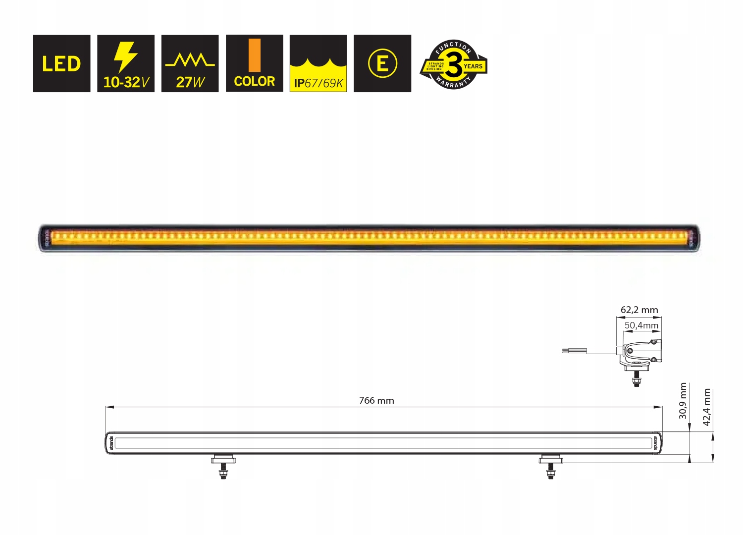 продукт имеет уровень защиты IP67 / 69K и одобрение E в соответствии с регламентом ECE R10.