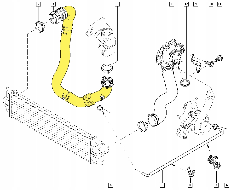 провод соединяется между интеркулером и всасывающим коллектором с правой стороны (сторона пассажира).