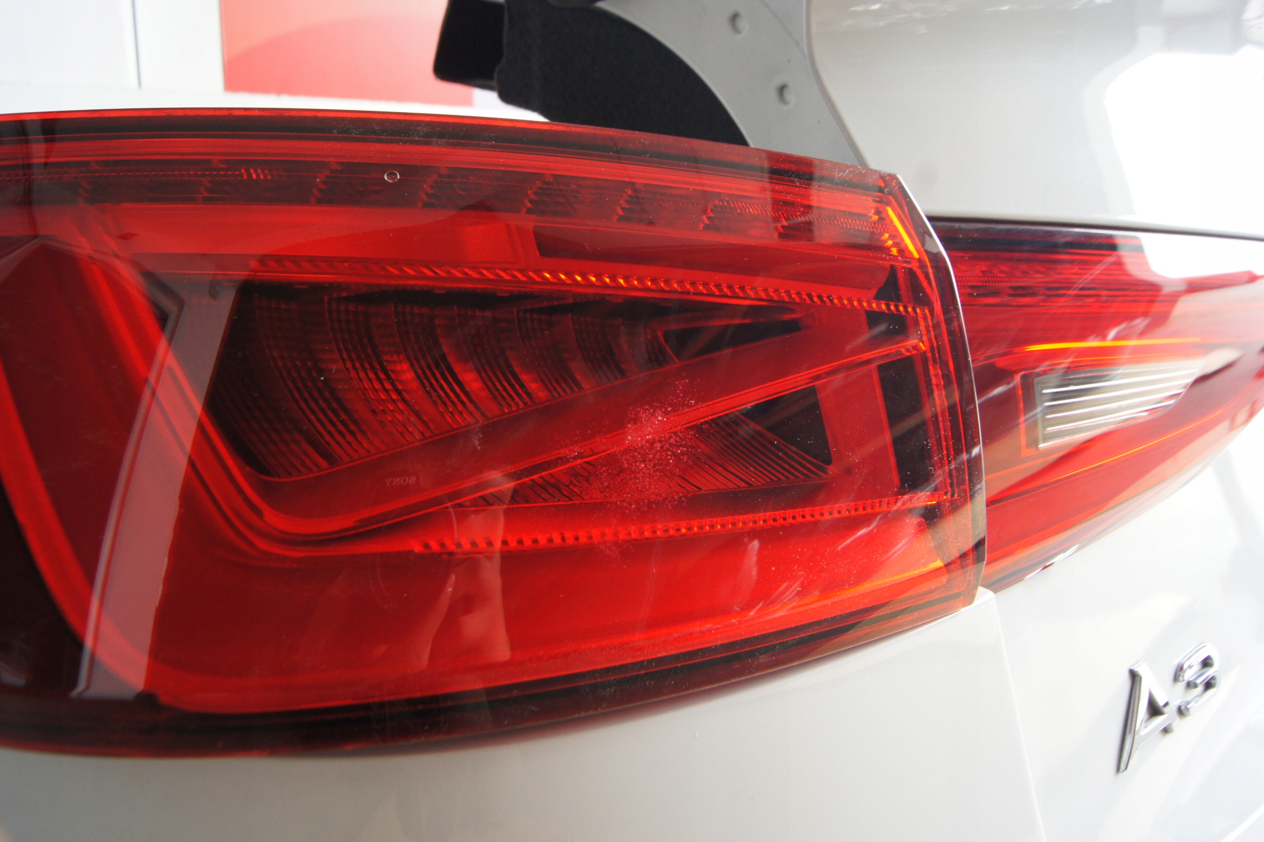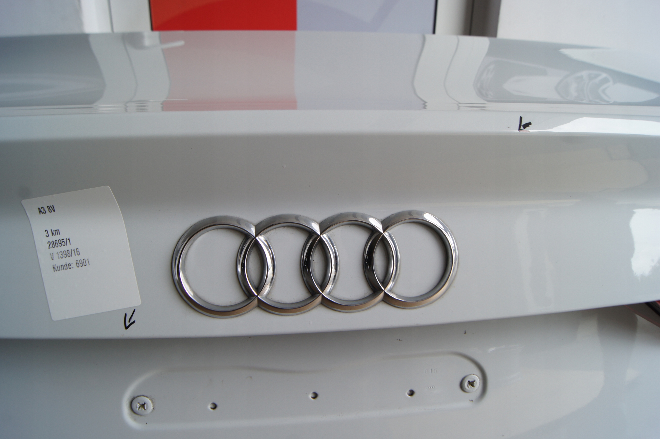 Задние детали седана Audi A3 8V5 в цвете LS9R включают: дверь багажного отделения в сборе с камерой, задние фонари в версии для США, задний бампер в сборе 4xPDC.