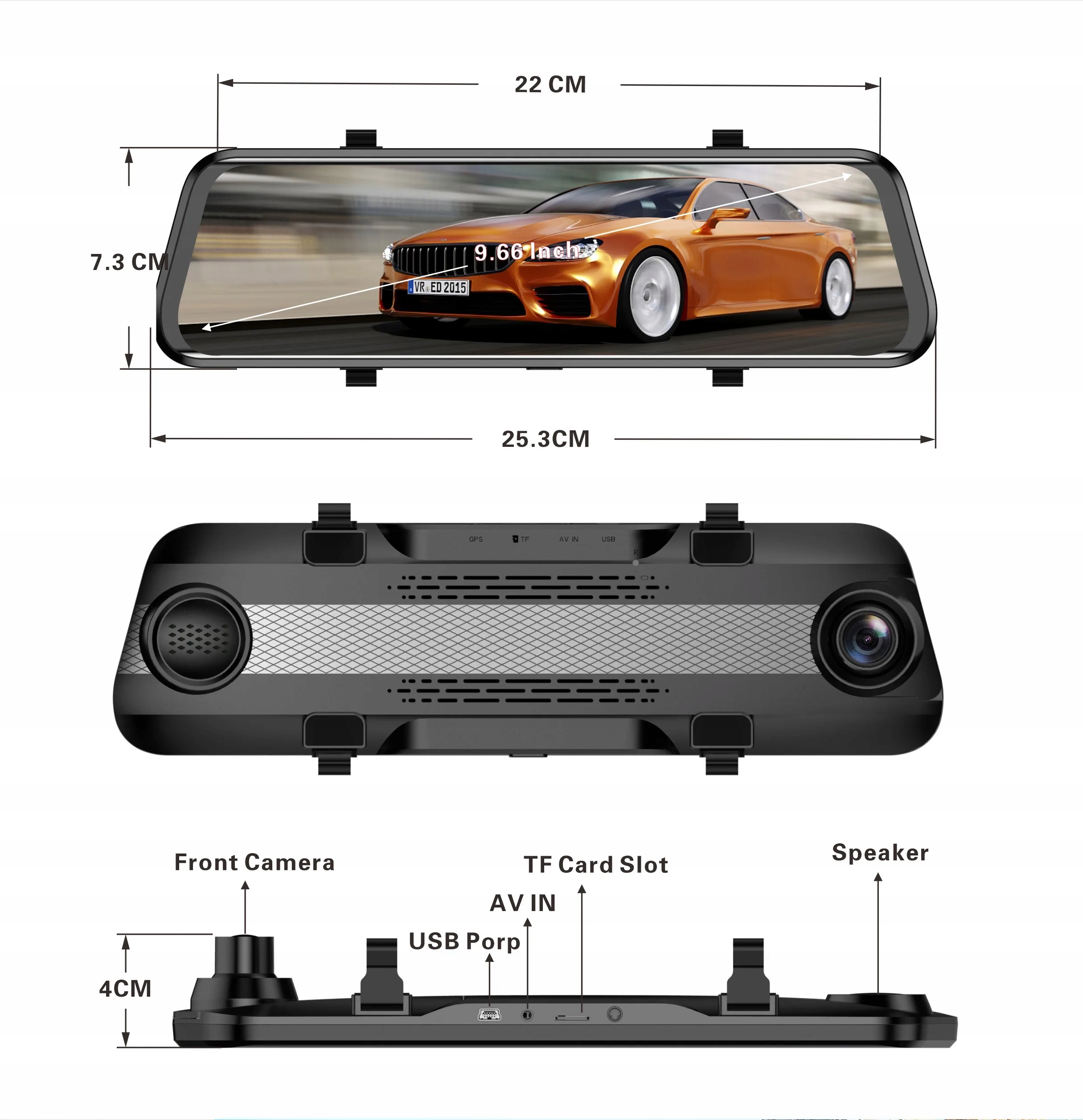 9,66-дюймовый автомобильный видеорегистратор с разрешением 1080p, запись видео в прямом эфире, пульт дистанционного управления, автомобильный черный ящик, камера заднего вида для автомобилей с дисплеем