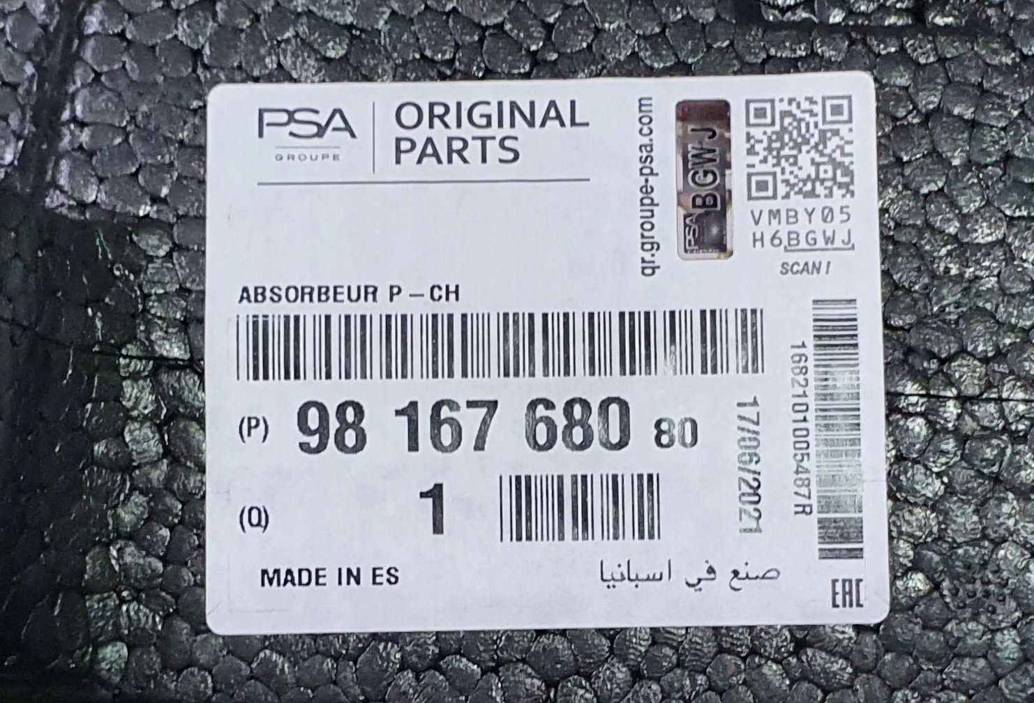 9816768080 - АМОРТИЗАТОР БАМПЕРА RIFTER BERLINGO IV ORIG
