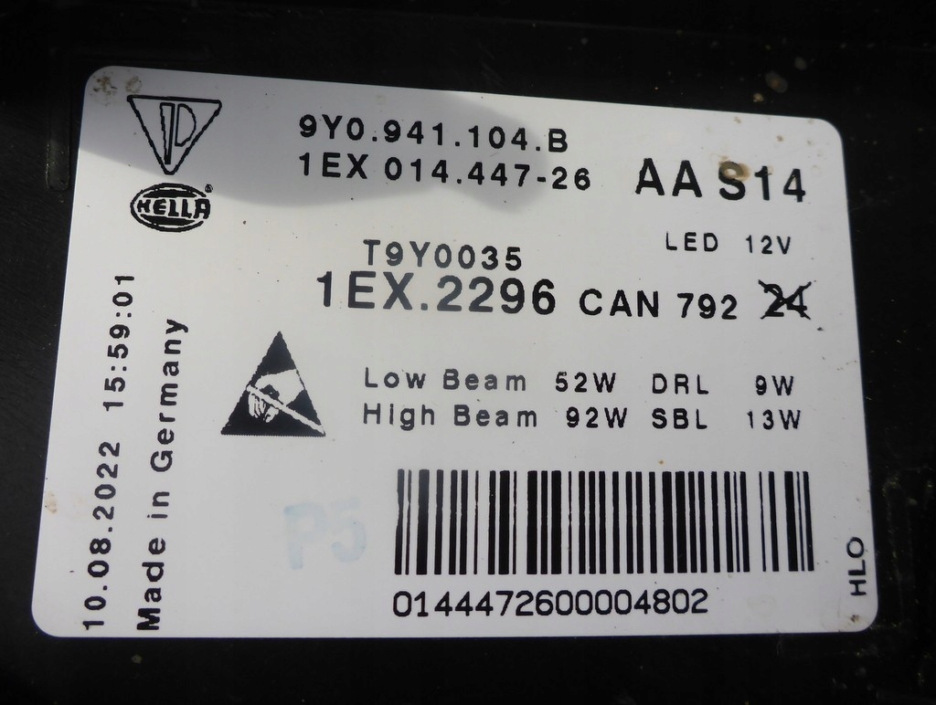| Оригинальный номер детали | 9Y0941104B, 9Y0 941 104 B |