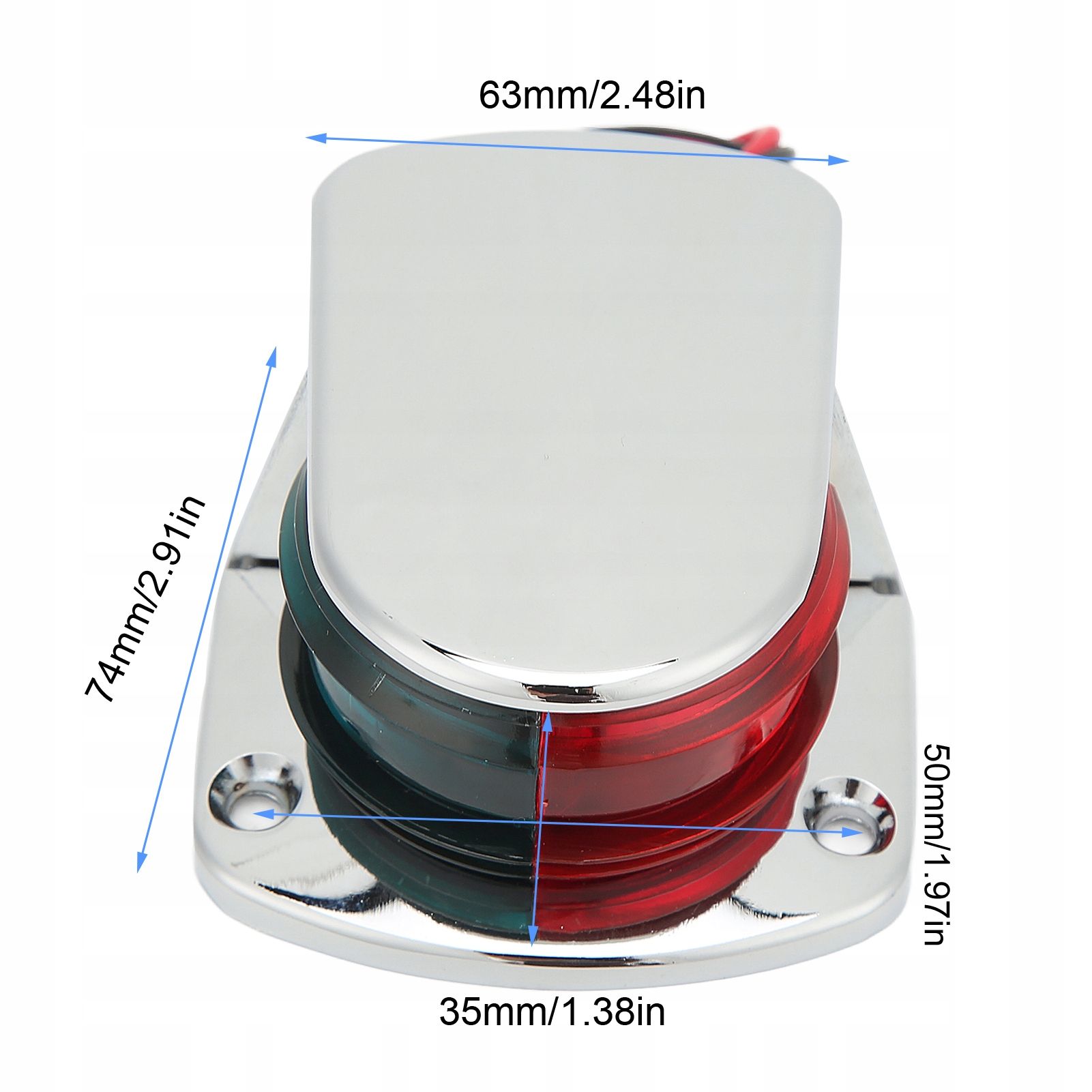 3. Сильная светопропускание: красные и зеленые линзы помещены в крышки из цинкового сплава. Двухцветный свет проникает в туман для обеспечения безопасности и видимости, идеально подходит для ночного плавания.