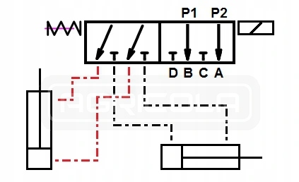 Пример управления: два независимо действующих привода 2-го действия, управляемых из одной секции в гидравлическом распределителе.п>