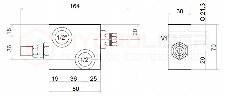 присоедините одну сторону V1 и V2 к напорным линиям, например, в гидравлическом распределителе. Аналогичные выходы с другой стороны V1 и V2 к соединительным портам приемника, например, гидравлического двигателя.п>
