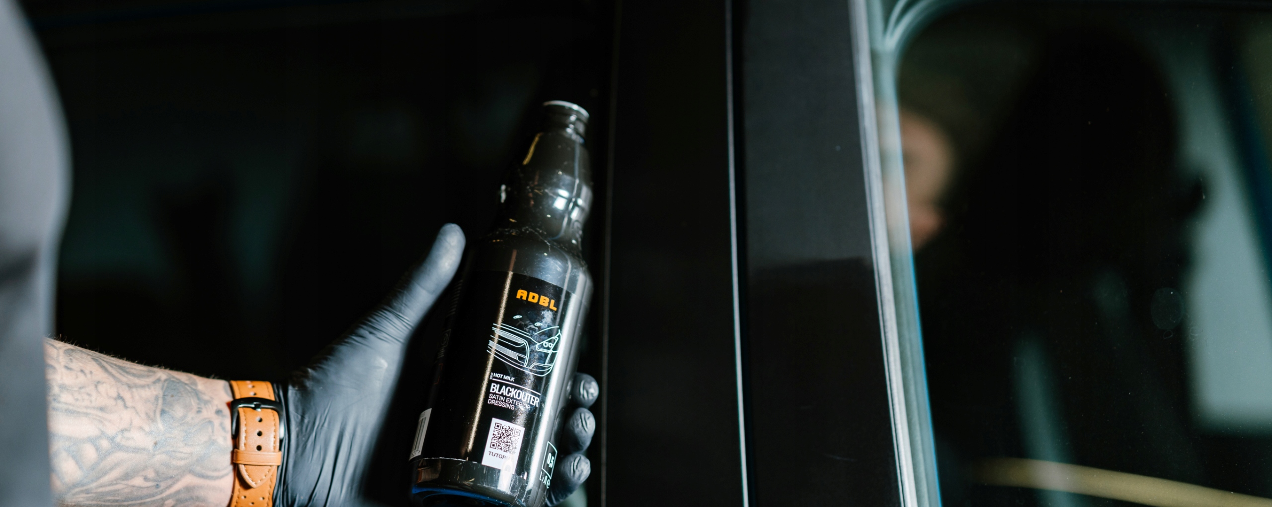 • равномерно распределите небольшое количество продукта с помощью Adbl Foamburger или Adbl One Shot Tire Pad на очищенном пластиковом внешнем элементе