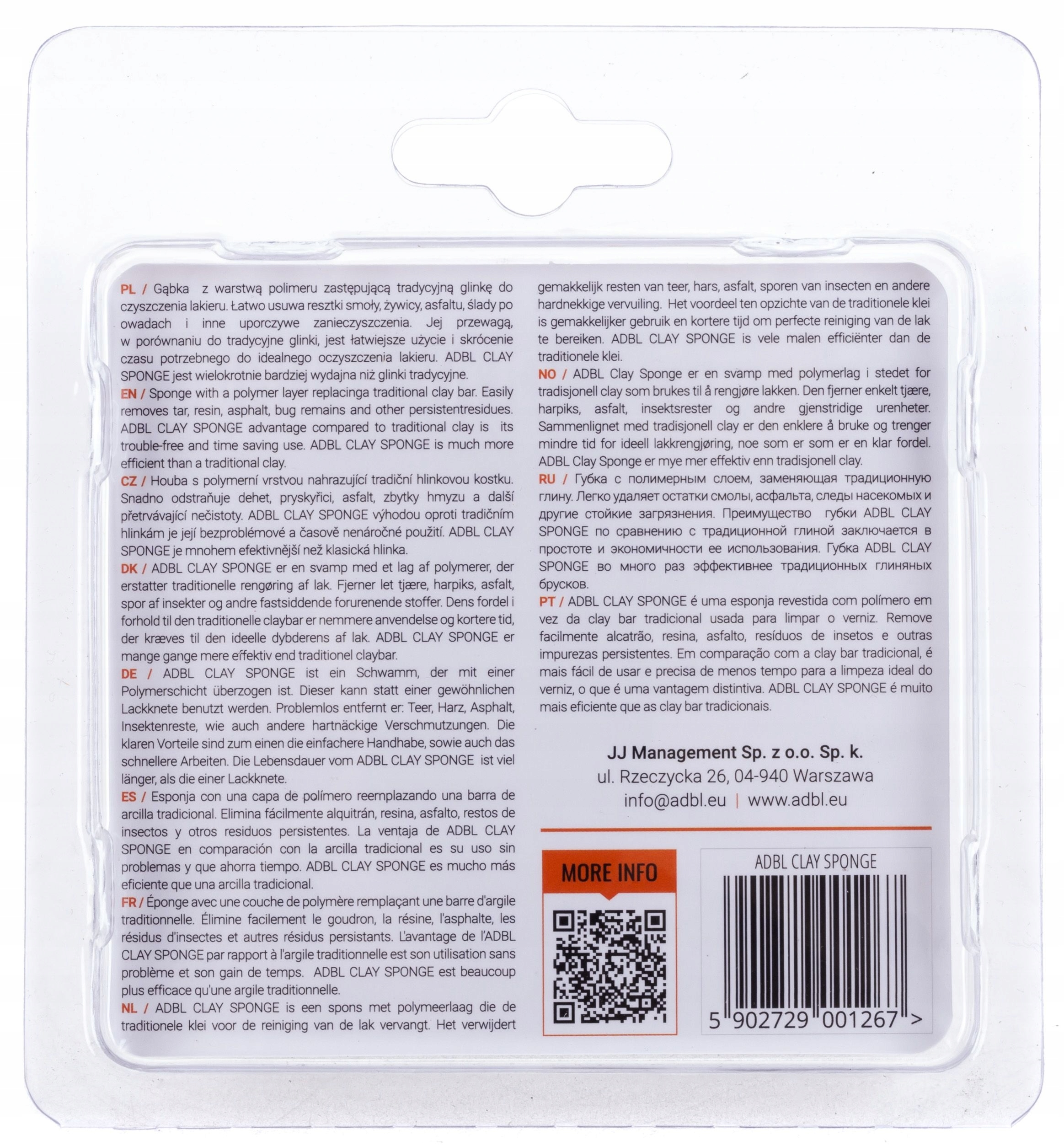 губка с полимерным слоем, заменяющим традиционную глину для очистки лака. Легко удаляет остатки смолы, смолы, асфальта, следы насекомых и другие стойкие загрязнения. Его преимущество, по сравнению с традиционной глиной, заключается в более легком использовании и сокращении времени, необходимого для идеальной очистки лака.ADBL CLAY SPONGE во много раз более эффективен, чем традиционные глины.